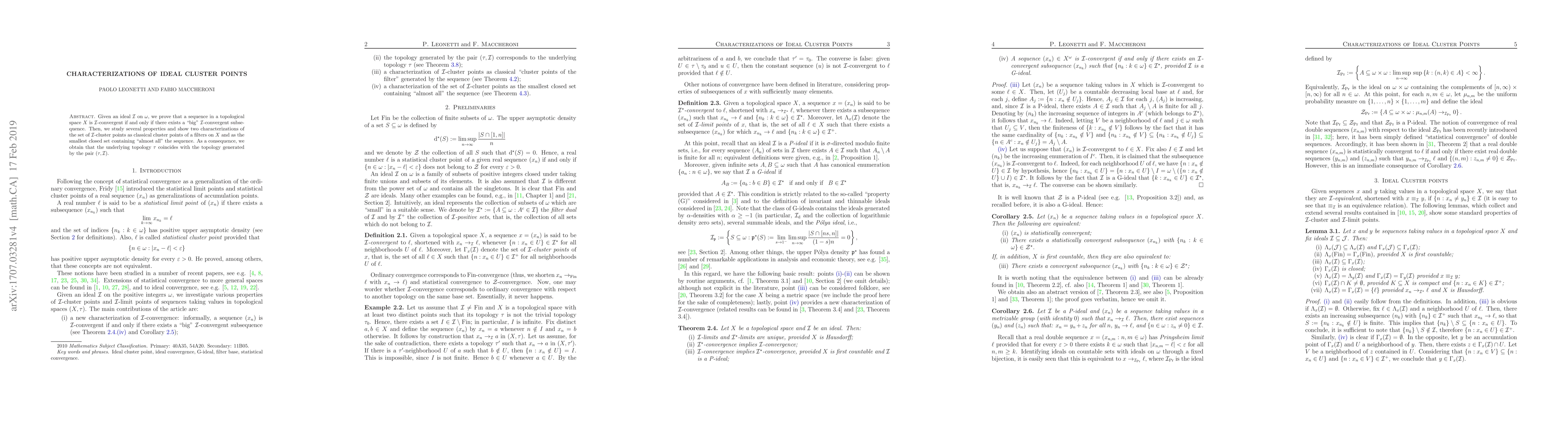 Researchers prove that a sequence in a topological space converges if and only if there exists a subsequence that converges to every point in the space, linking ideal convergence with classical cluster points and topology.