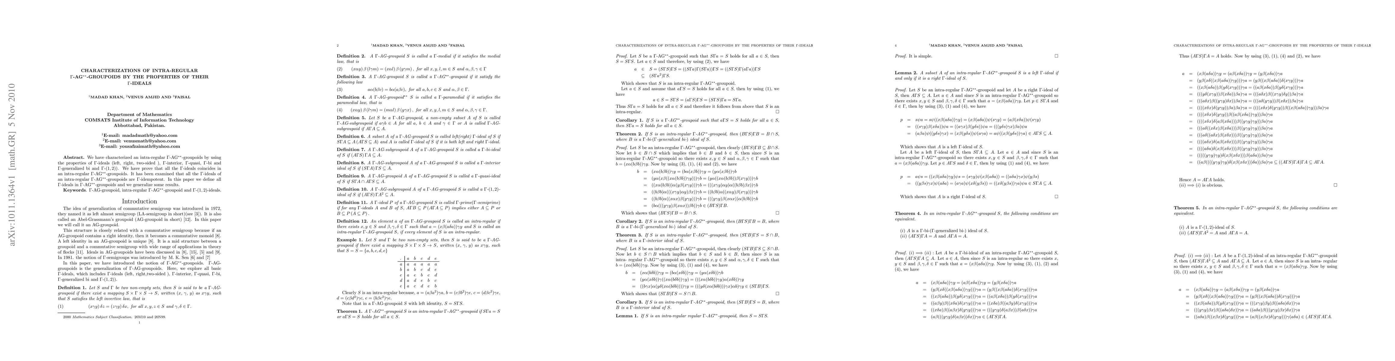 This paper characterizes intra-regular {\Gamma}-AG^{**}-groupoids through the properties of various {\Gamma}-ideals, proving that all such ideals coincide and are {\Gamma}-idempotent in these groupoids. It also generalizes some existing results regarding {\Gamma}-ideals in {\Gamma}-AG^{**}-groupoids.