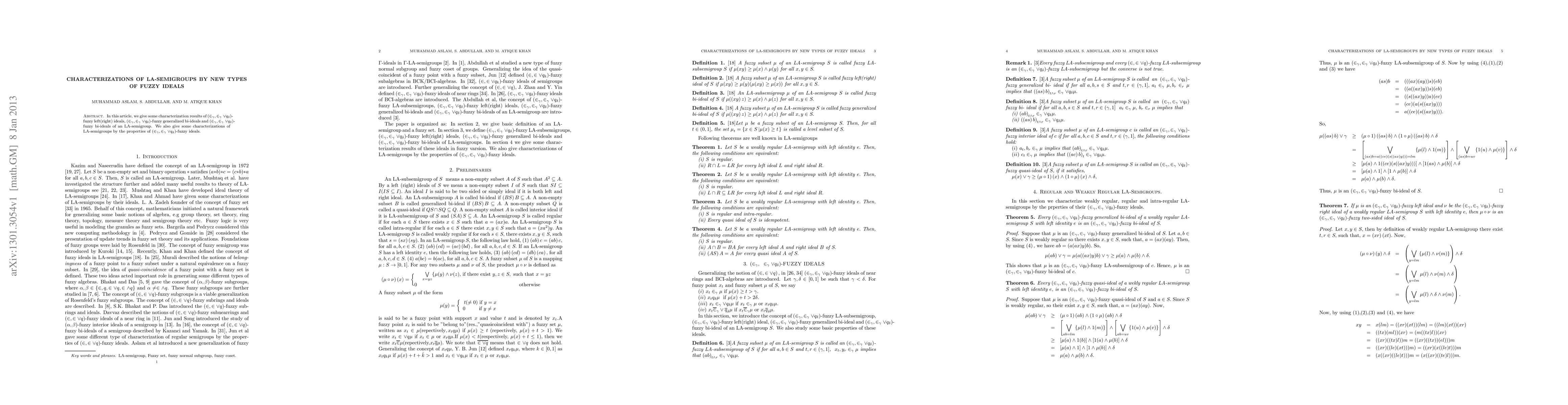 This paper provides characterization results for fuzzy left, right ideals, generalized bi-ideals, and -fuzzy bi-ideals within LA-semigroups. Additionally, it explores how properties of these fuzzy ideals can define LA-semigroups.