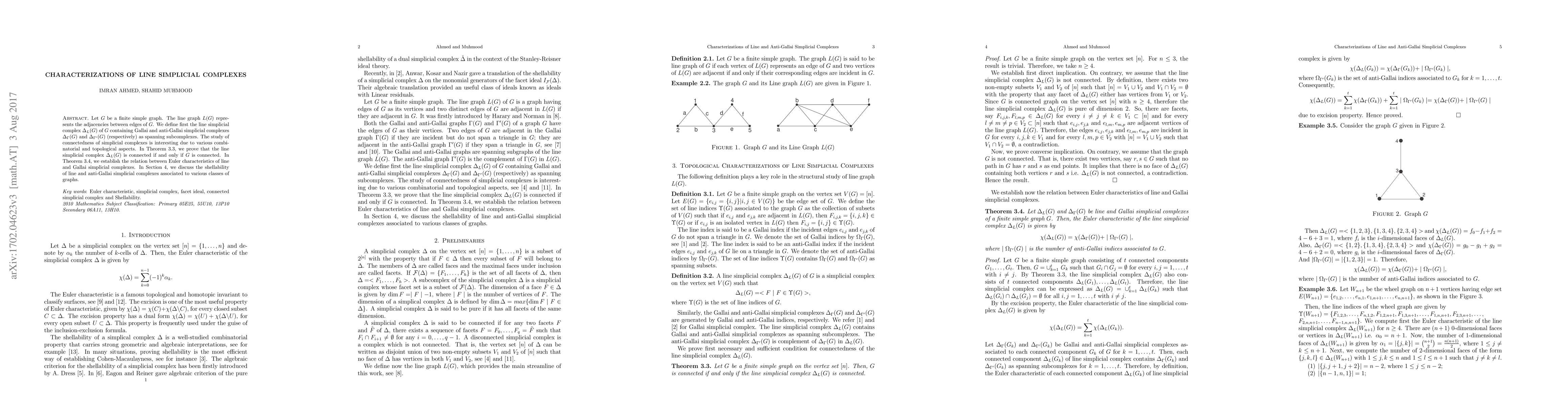 This paper investigates the properties of line simplicial complexes derived from line graphs of finite simple graphs, establishing connections between their connectedness and the graph's connectivity. It also explores the Euler characteristics and shellability of these complexes for different graph classes.