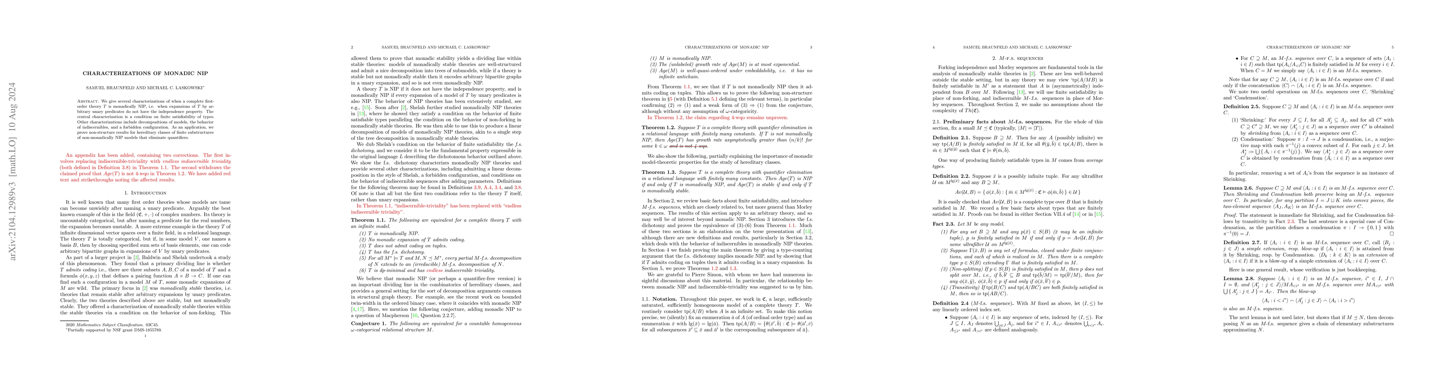 This paper provides multiple characterizations of when a first-order theory $T$ is monadically NIP, focusing on conditions related to finite satisfiability, model decompositions, indiscernibles, and forbidden configurations. An application demonstrates non-structure results for hereditary classes of finite substructures in non-monadically NIP models.