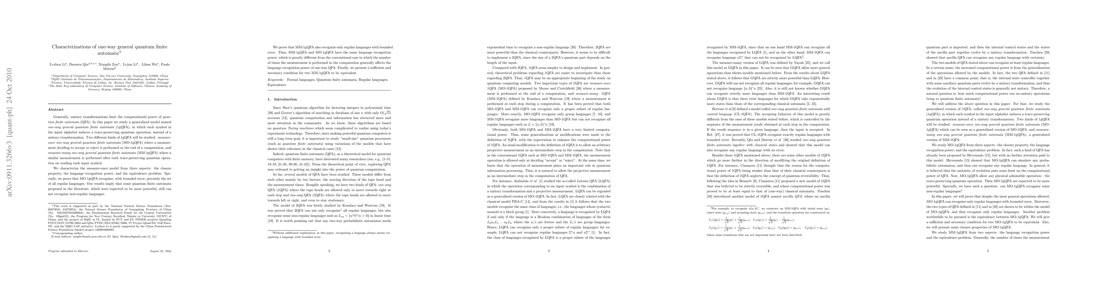 This paper introduces a generalized model of one-way quantum finite automata (1gQFA) where each input symbol induces a trace-preserving quantum operation. It shows that both measure-once and measure-many variants recognize precisely regular languages with bounded error, defying conventional quantum automata behavior.