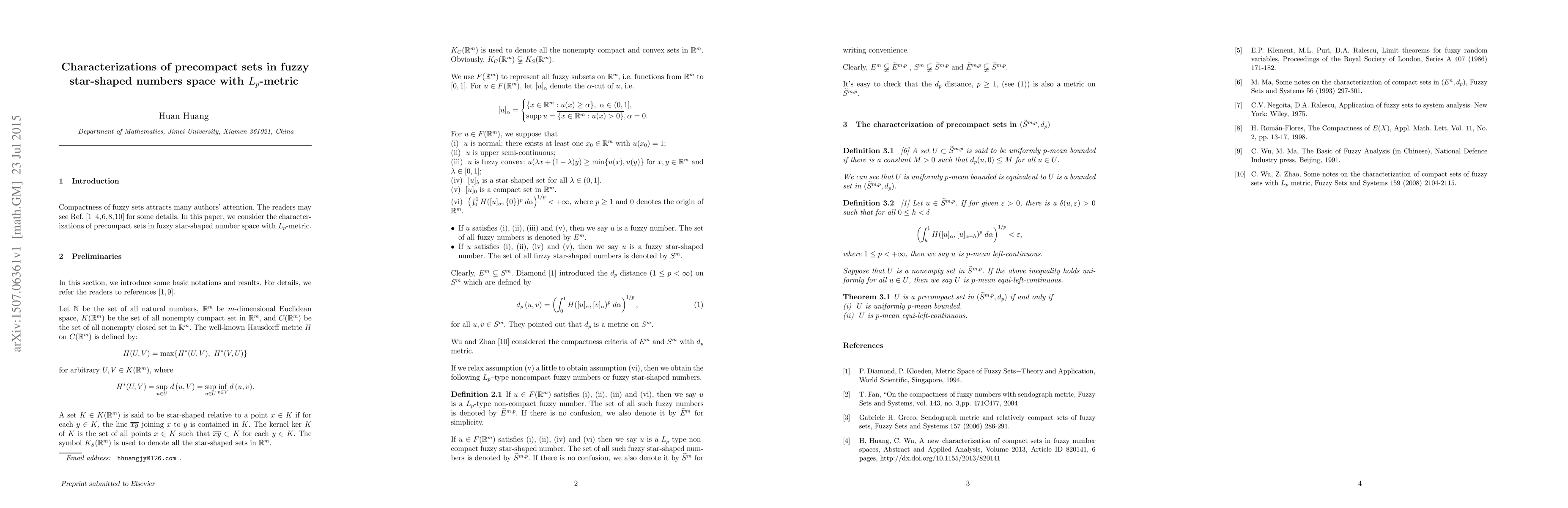 In this paper, we consider the characterizations of precompact sets in fuzzy star-shaped number space with Lp-metric.