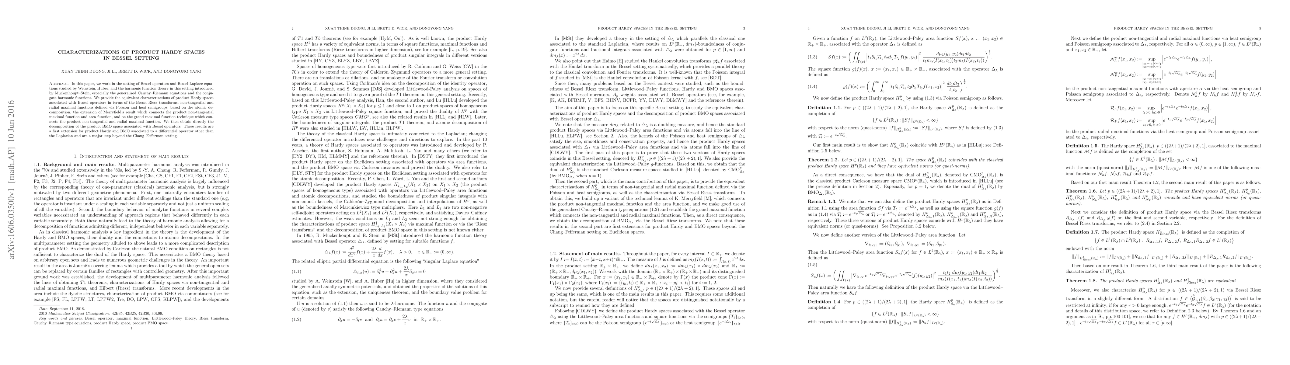 This paper characterizes product Hardy spaces linked to Bessel operators using Bessel Riesz transforms and maximal functions. It extends Merryfield's results and introduces the grand maximal function technique, achieving decompositions for product BMO spaces and advancing beyond the Chang--Fefferman framework.