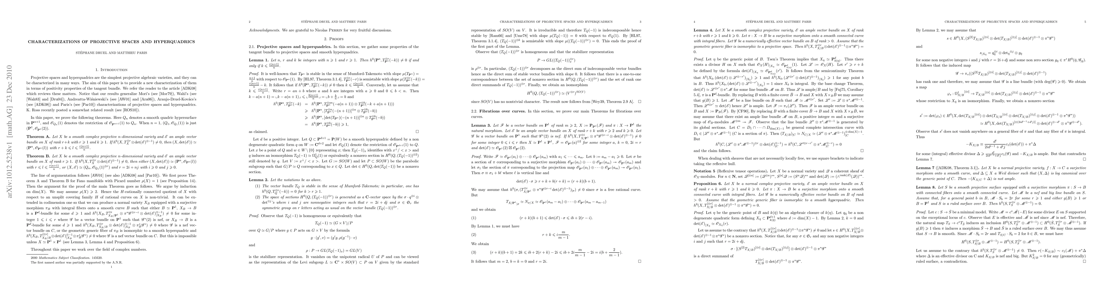 This paper demonstrates that a smooth projective variety X is isomorphic to a projective space or a smooth quadric hypersurface if the r-th tensor power of its tangent bundle contains the determinant of an ample vector bundle of rank at least r. The result provides a new characterization of these geometric objects.