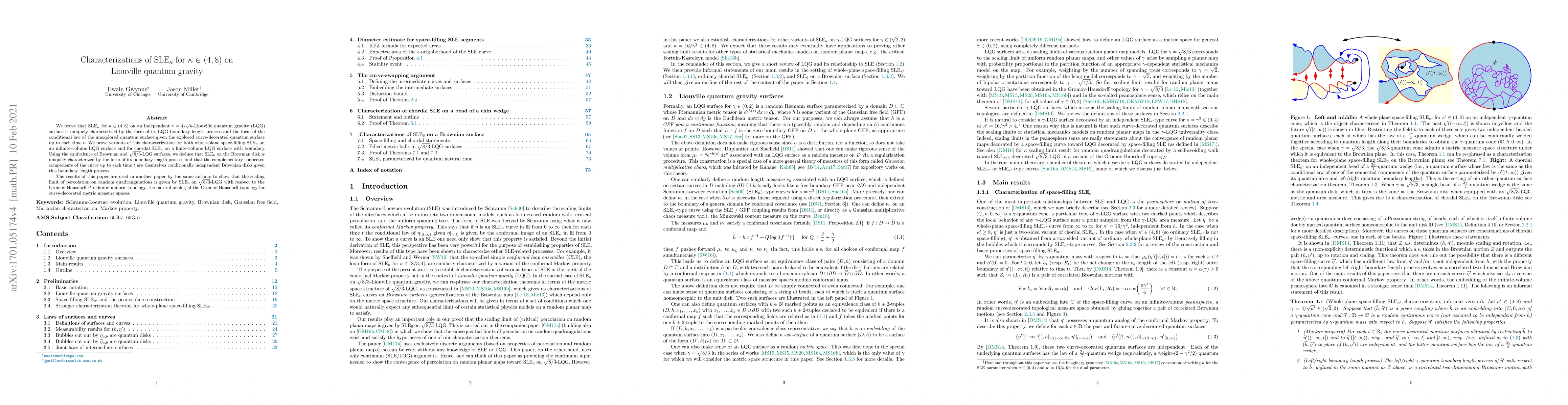 This paper proves that SLE$_\kappa$ for $\kappa \in (4,8)$ on Liouville quantum gravity (LQG) surfaces is uniquely characterized by its LQG boundary length process and the conditional law of the unexplored quantum surface. The results extend to both whole-plane and chordal SLE$_\kappa$ on infinite and finite-volume LQG surfaces, respectively.