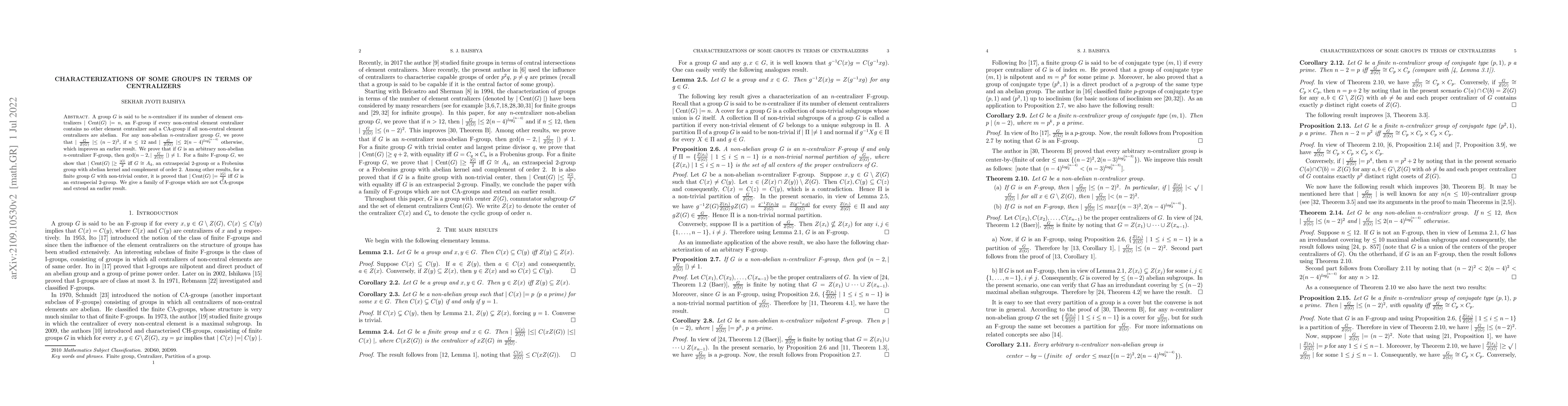 This paper explores various types of groups defined by their centralizers, including $n$-centralizer, F-group, and CA-group. It proves new bounds on the quotient group $\frac{G}{Z(G)}$ for non-abelian $n$-centralizer groups and establishes conditions under which the centralizer count equals half the group size, identifying specific group structures that meet these criteria.