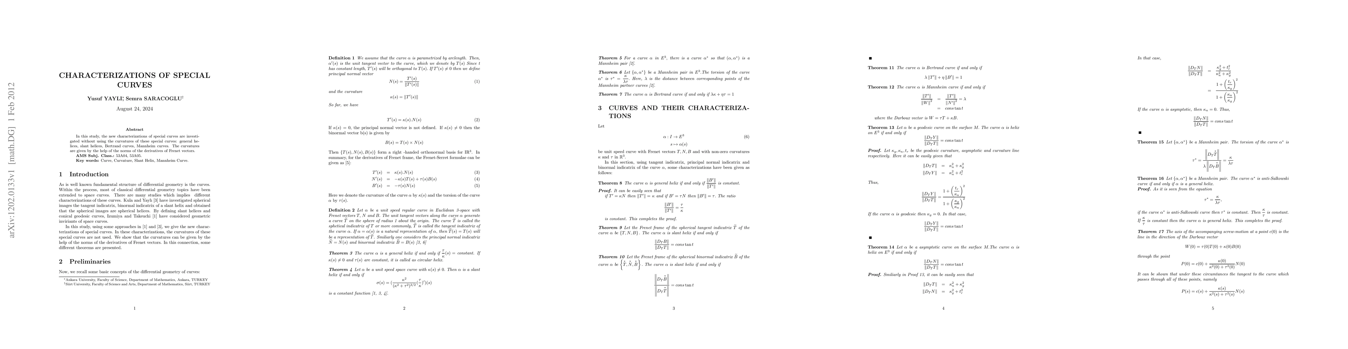 This research presents novel ways to define special curves, such as general helices, slant helices, Bertrand curves, and Mannheim curves, without relying on their curvatures. It achieves this by utilizing the norms of Frenet vector derivatives, offering a fresh perspective on these curve classifications.