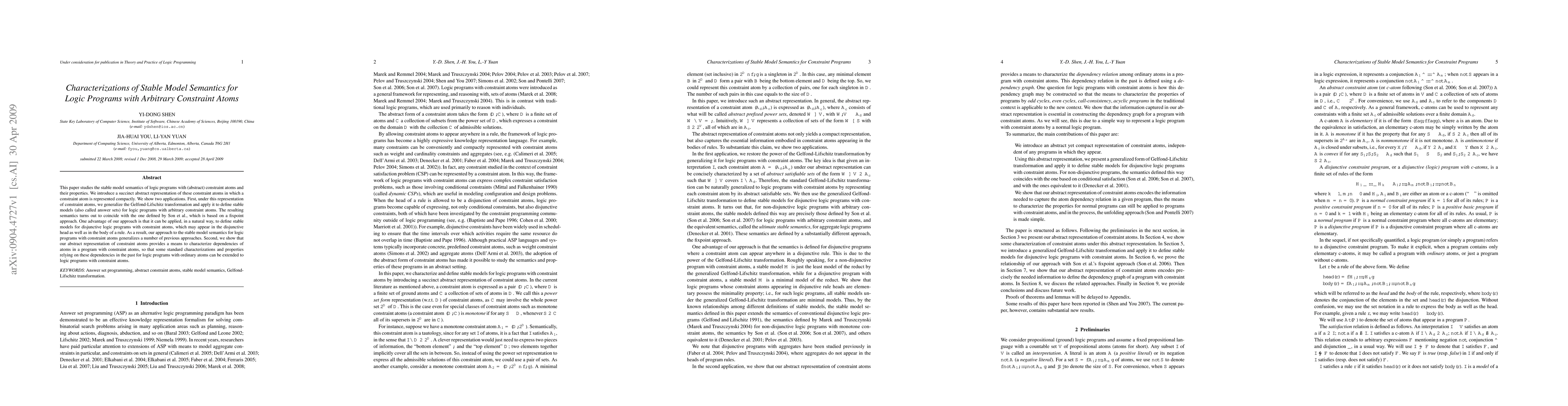 This paper introduces a succinct representation for constraint atoms in logic programs, generalizing the Gelfond-Lifschitz transformation to define stable models for programs with arbitrary constraints. It also extends standard characterizations of atom dependencies to logic programs with constraint atoms.