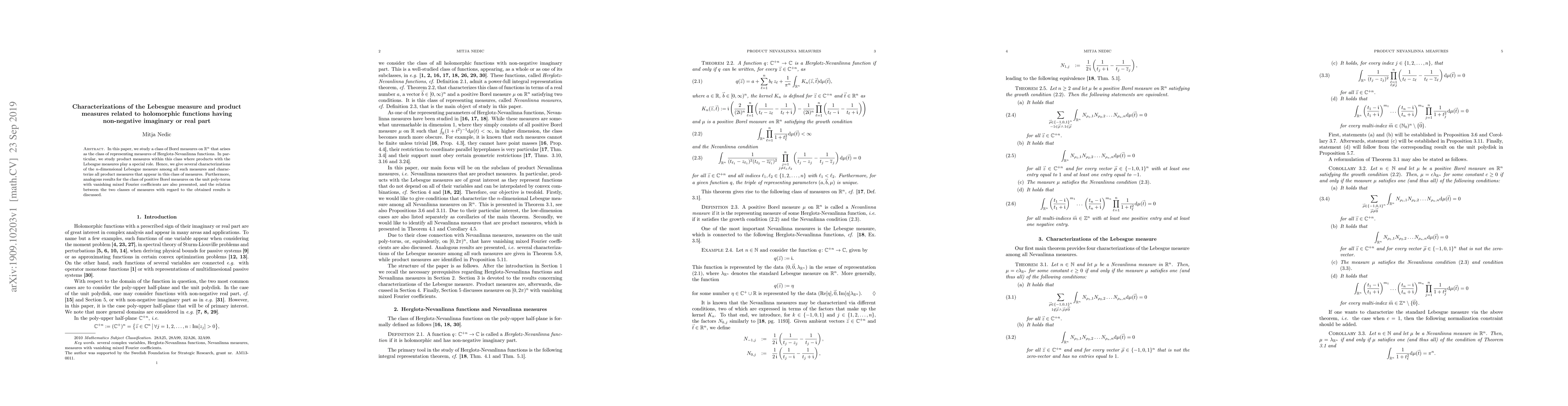 This paper studies Borel measures related to holomorphic functions with non-negative imaginary or real part, focusing on product measures and their characterization, particularly in relation to the Lebesgue measure.