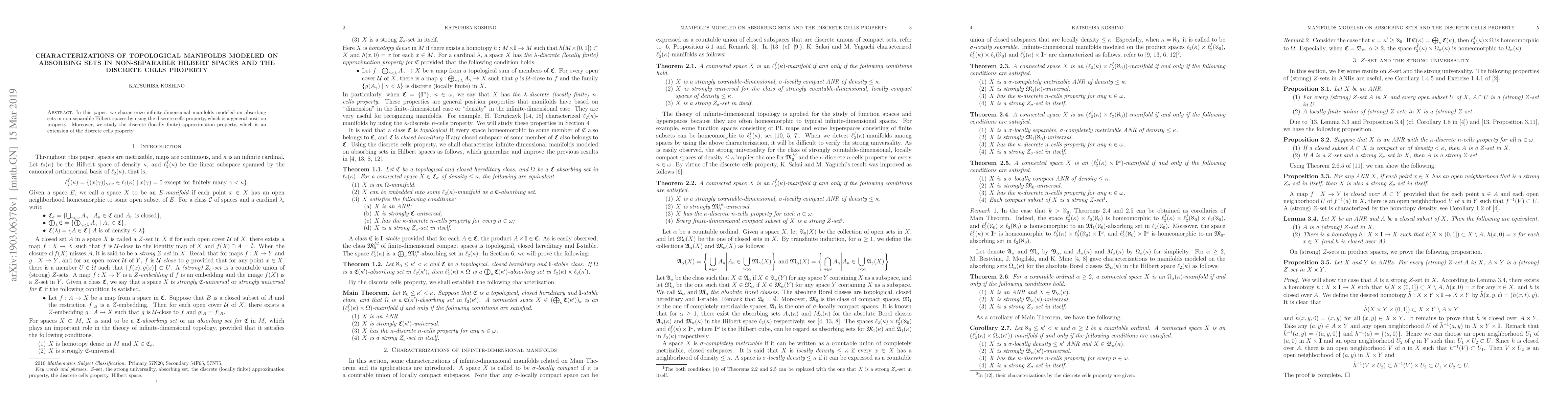 In this paper, we characterize infinite-dimensional manifolds modeled on absorbing sets in non-separable Hilbert spaces by using the discrete cells property, which is a general position property. Moreover, we study the discrete (locally finite) approximation property, which is an extension of the discrete cells property.