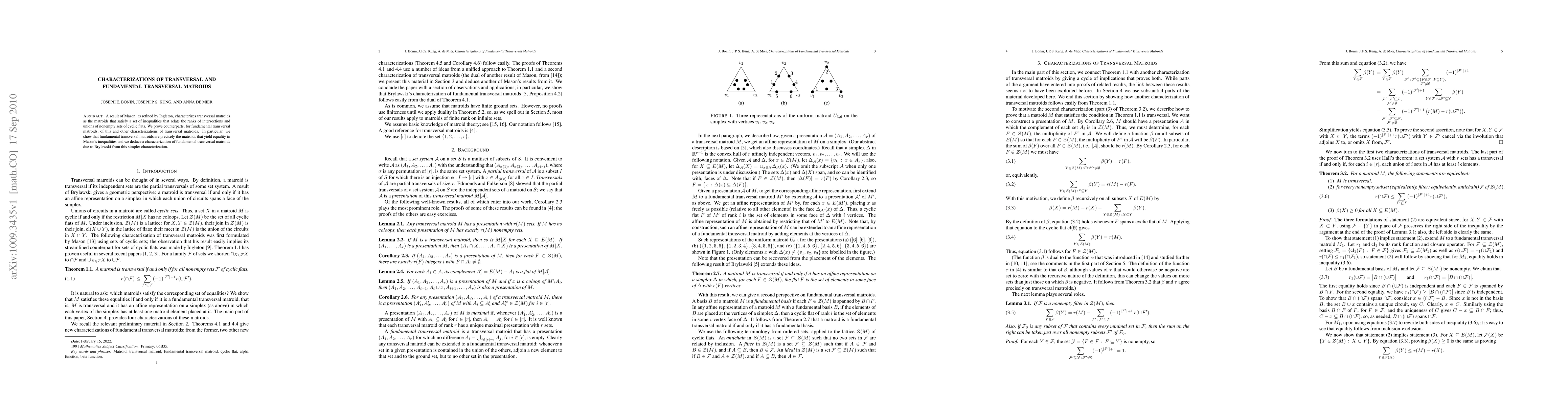 This paper proves characterizations for fundamental transversal matroids, demonstrating they satisfy equality in Mason's inequalities and relate these to a simpler characterization, further deducing a known result by Brylawski.
