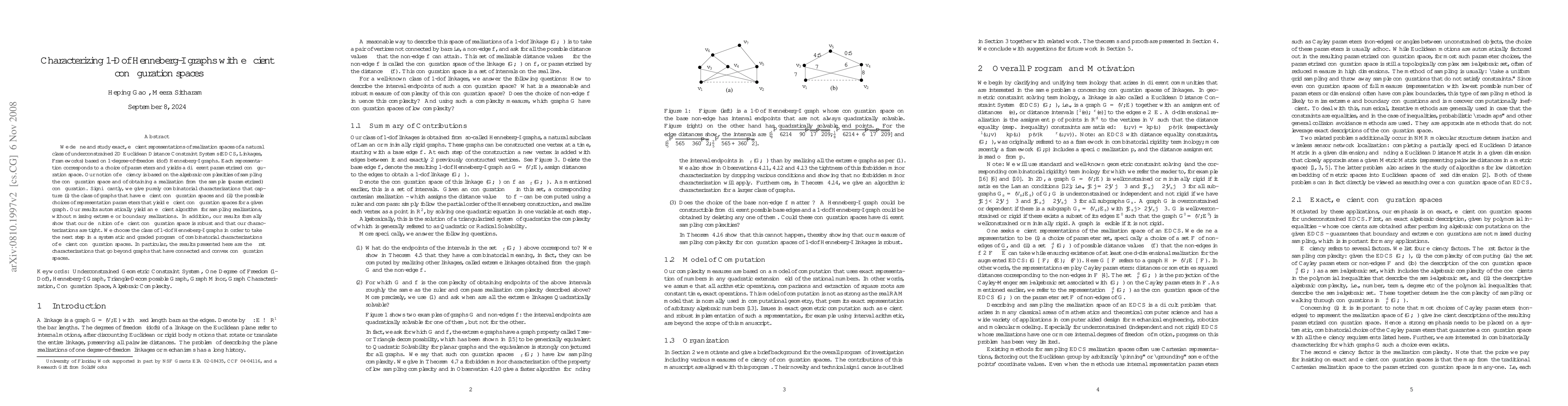 This paper defines efficient representations for 1-dof Henneberg-I graphs' configuration spaces, focusing on algebraic complexities for sampling and realization. It provides combinatorial characterizations for efficient configuration spaces and tight bounds on these characterizations, leading to an efficient algorithm for sampling realizations.