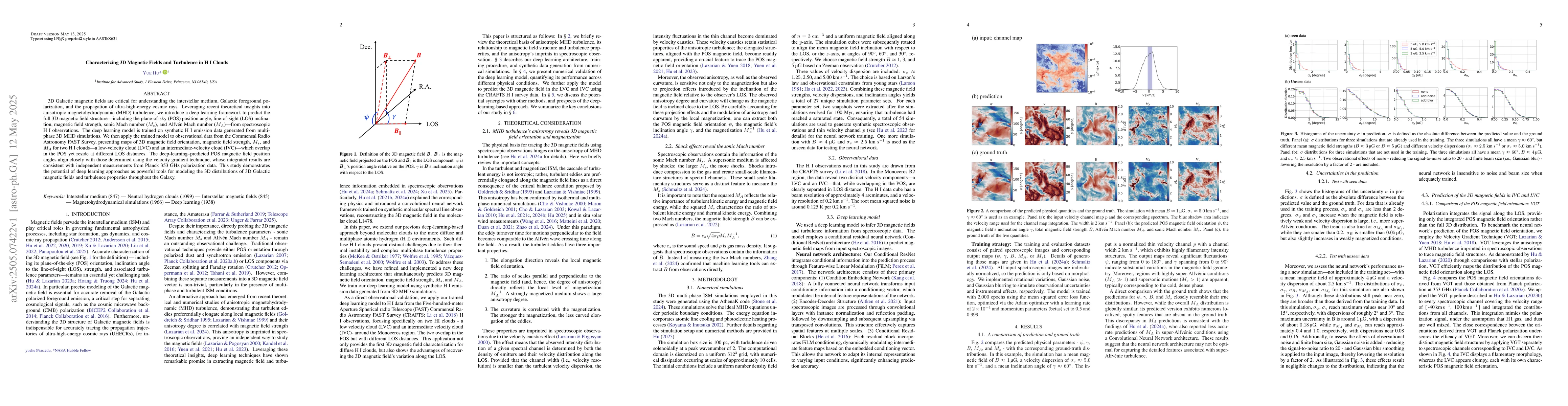 The research introduces a deep learning framework trained on synthetic H I emission data from 3D MHD simulations to predict 3D magnetic field structures and turbulence properties from spectroscopic H I observations.