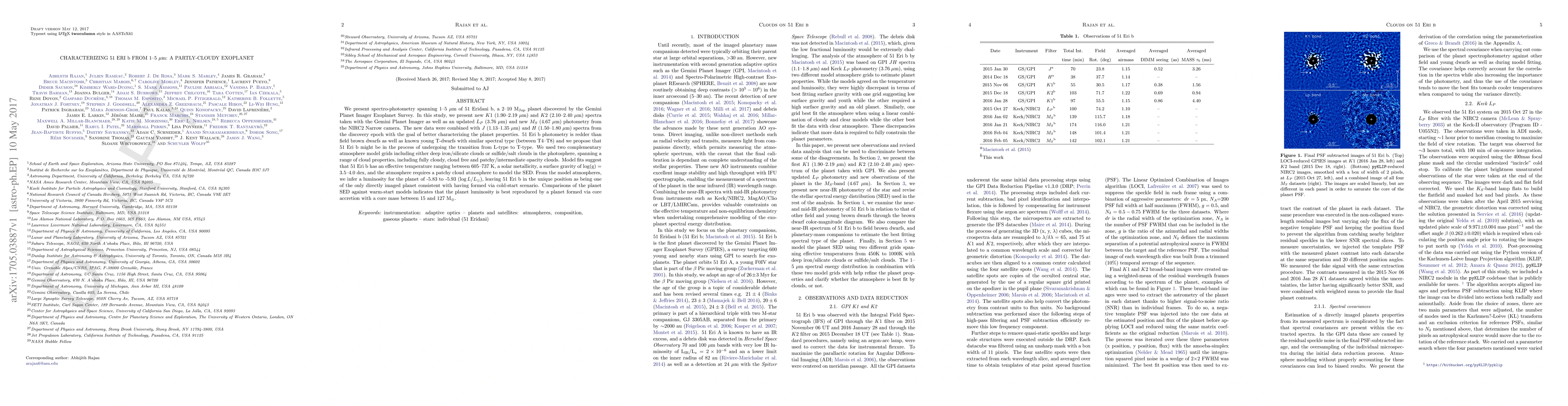 This study characterizes 51 Eri b, a 2-10 M$_\text{Jup}$ exoplanet, using new spectro-photometry from 1-5 $\mu$m. The data suggest the planet is redder than similar brown dwarfs and may be transitioning from L-type to T-type, with an effective temperature of 605-737 K and a patchy cloud atmosphere.