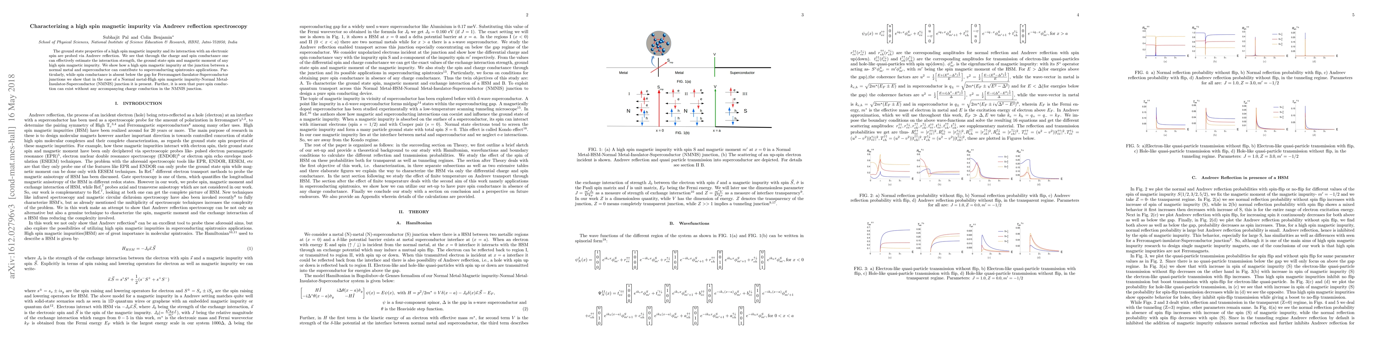 This paper investigates the ground state properties of high spin magnetic impurities via Andreev reflection spectroscopy, revealing the interaction between electronic spin and magnetic moment. It demonstrates that in NMNIS junctions, spin conductance can occur without charge conduction, suggesting potential for superconducting spintronics applications.
