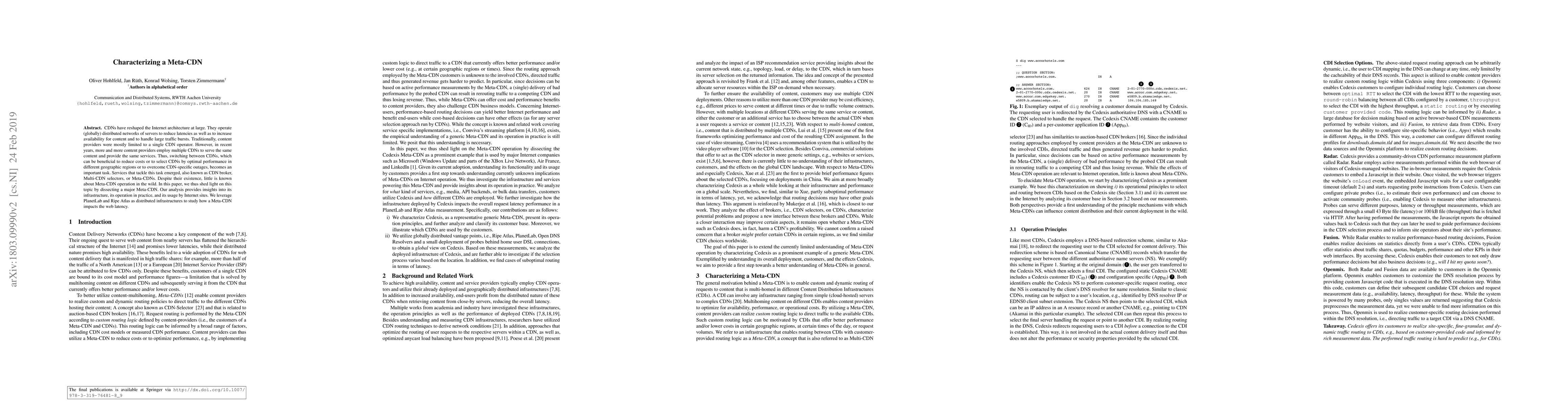 This paper investigates the operation and impact of a major Meta-CDN, analyzing its infrastructure, practical usage, and influence on web latency through distributed measurement tools. The findings offer insights into how Meta-CDNs facilitate content delivery across multiple CDNs to optimize performance and availability.