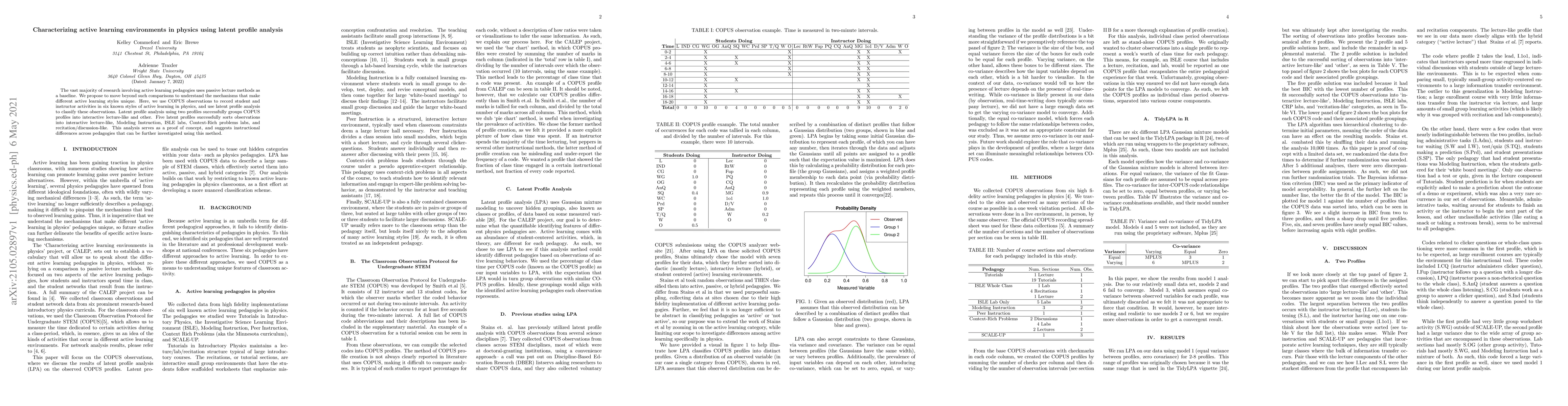 This study employs latent profile analysis to characterize six active learning styles in physics, identifying distinct groupings such as interactive lecture-like and Modeling Instruction. The findings suggest a framework for differentiating active learning pedagogies beyond traditional lecture comparisons.