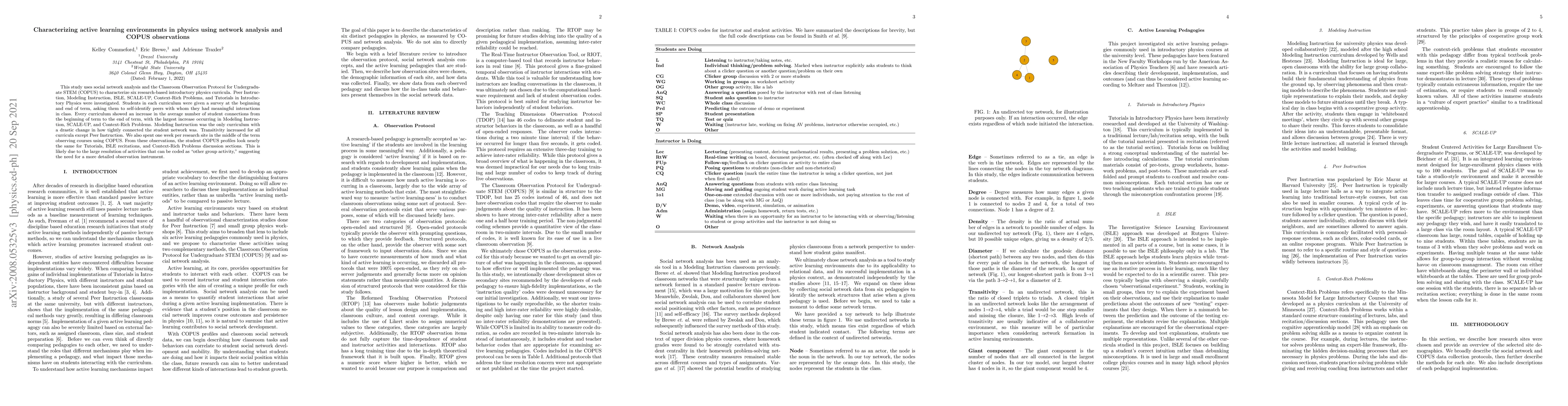 This study characterizes six research-based introductory physics curricula using social network analysis and COPUS observations, finding increased student connections and tighter networks in some curricula, with Modeling Instruction showing the most significant change. COPUS observations reveal similar student profiles across several curricula, indicating a need for a more detailed observation tool.