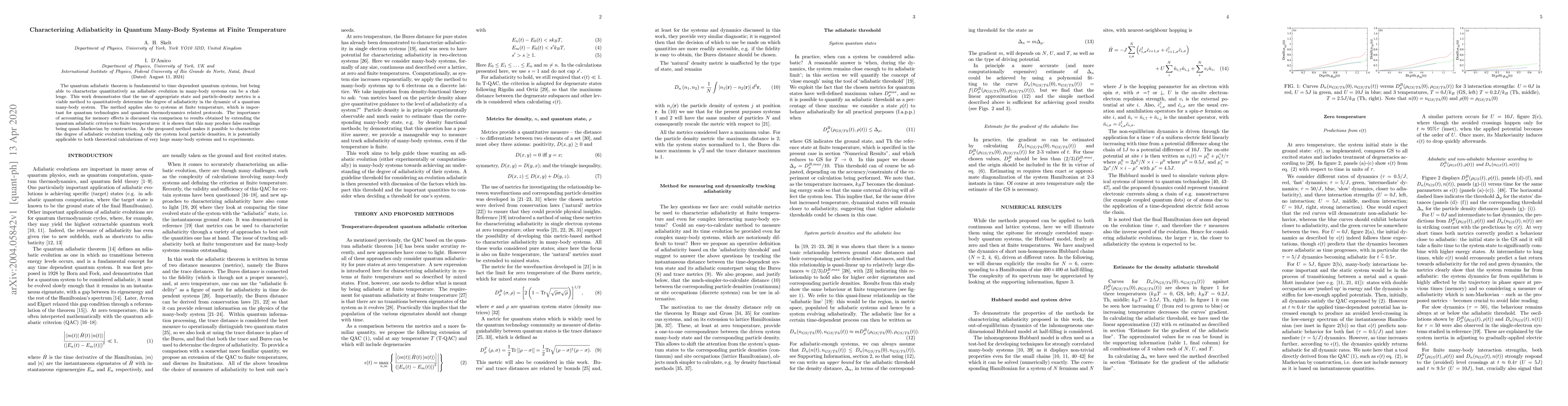 This paper proposes a method using state and particle-density metrics to quantitatively determine adiabaticity in quantum many-body systems, applicable even at finite temperatures. It highlights the importance of accounting for memory effects to avoid misinterpretation, offering a potential tool for both theoretical and experimental applications in quantum technologies.