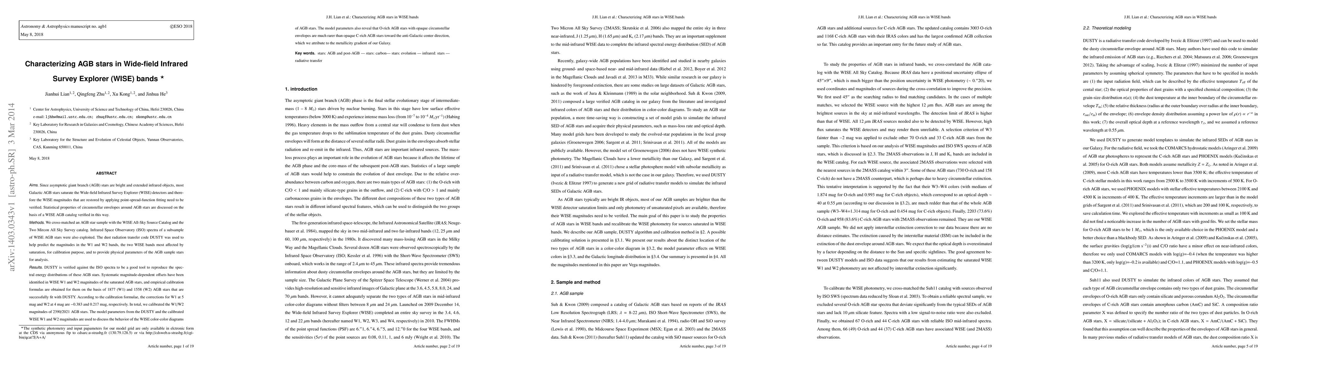 This paper characterizes AGB stars in WISE bands, verifying WISE magnitudes for saturated AGB stars using point-spread-function fitting and DUSTY modeling. Empirical calibration formulas for WISE W1 and W2 bands are derived, revealing systematic magnitude-dependent offsets and providing insights into the circumstellar envelopes of AGB stars.