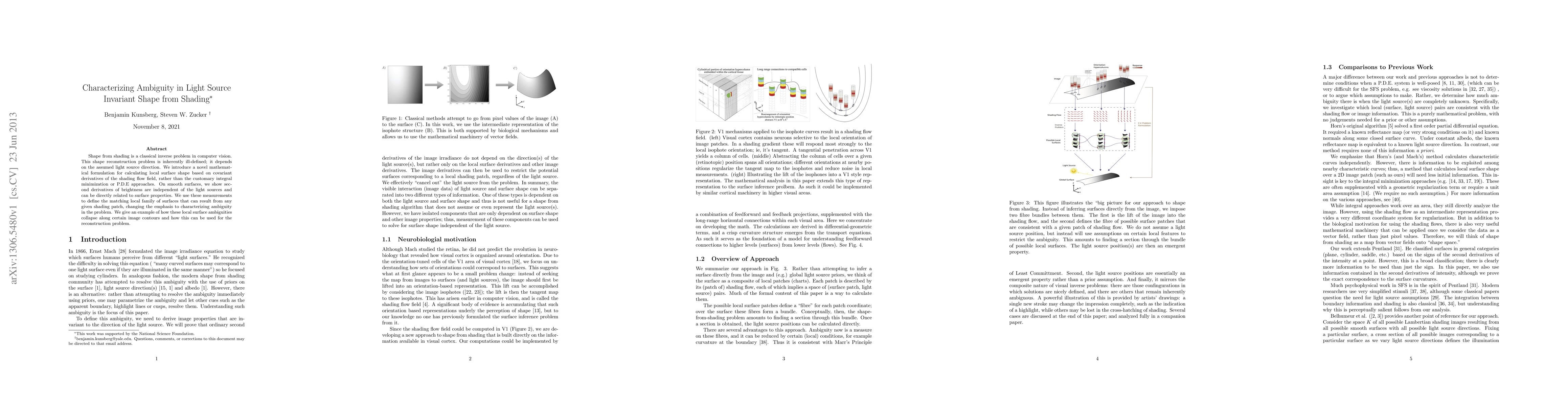 Shape from shading is a classical inverse problem in computer vision. This shape reconstruction problem is inherently ill-defined; it depends on the assumed light source direction. We introduce a novel mathematical formulation for calculating local surface shape based on covariant derivatives of the shading flow field, rather than the customary integral minimization or P.D.E approaches. On smooth surfaces, we show second derivatives of brightness are independent of the light sources and can be directly related to surface properties. We use these measurements to define the matching local family of surfaces that can result from any given shading patch, changing the emphasis to characterizing ambiguity in the problem. We give an example of how these local surface ambiguities collapse along certain image contours and how this can be used for the reconstruction problem.