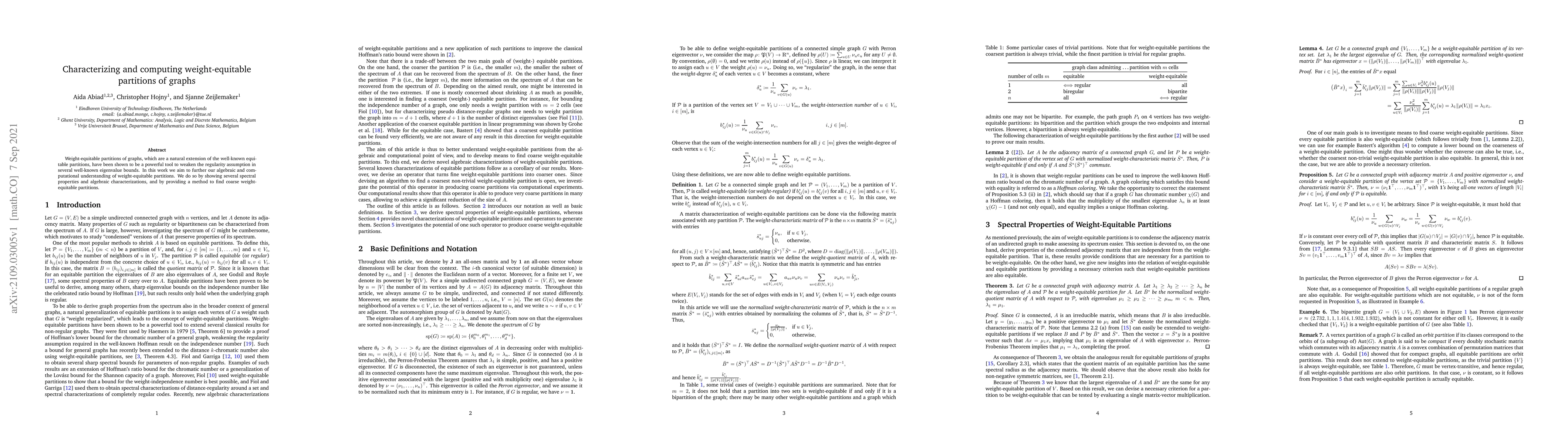 This paper explores the concept of weight-equitable partitions in graphs, extending equitable partitions, and provides spectral properties and algebraic characterizations. It also introduces a computational method for finding coarse weight-equitable partitions to improve eigenvalue bound accuracy.