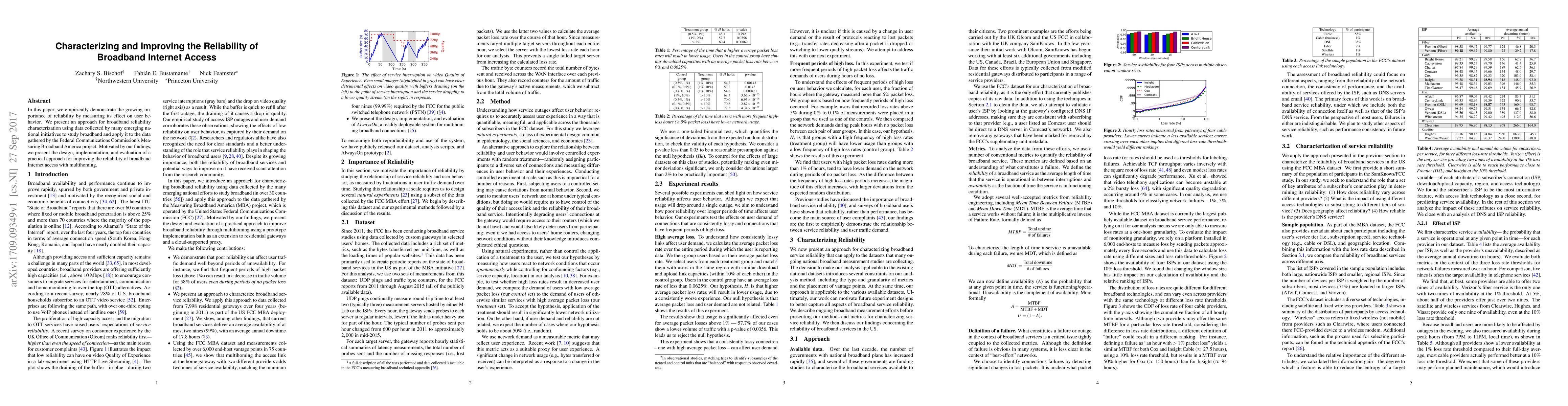 Researchers found that broadband reliability affects user behavior and presented a practical approach to improve it through multihoming, which involves using multiple internet connections simultaneously.