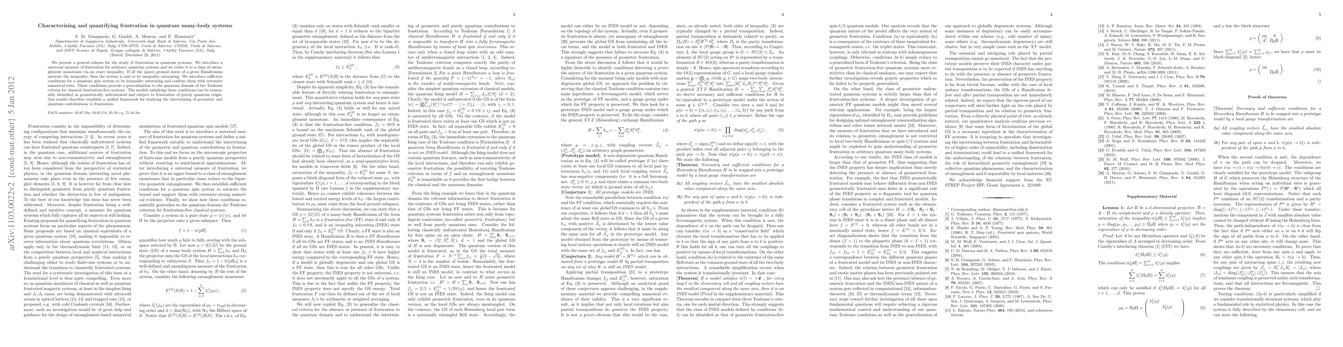We present a general scheme for the study of frustration in quantum systems. We introduce a universal measure of frustration for arbitrary quantum systems and we relate it to a class of entanglement monotones via an exact inequality. If all the (pure) ground states of a given Hamiltonian saturate the inequality, then the system is said to be inequality saturating. We introduce sufficient conditions for a quantum spin system to be inequality saturating and confirm them with extensive numerical tests. These conditions provide a generalization to the quantum domain of the Toulouse criteria for classical frustration-free systems. The models satisfying these conditions can be reasonably identified as geometrically unfrustrated and subject to frustration of purely quantum origin. Our results therefore establish a unified framework for studying the intertwining of geometric and quantum contributions to frustration.