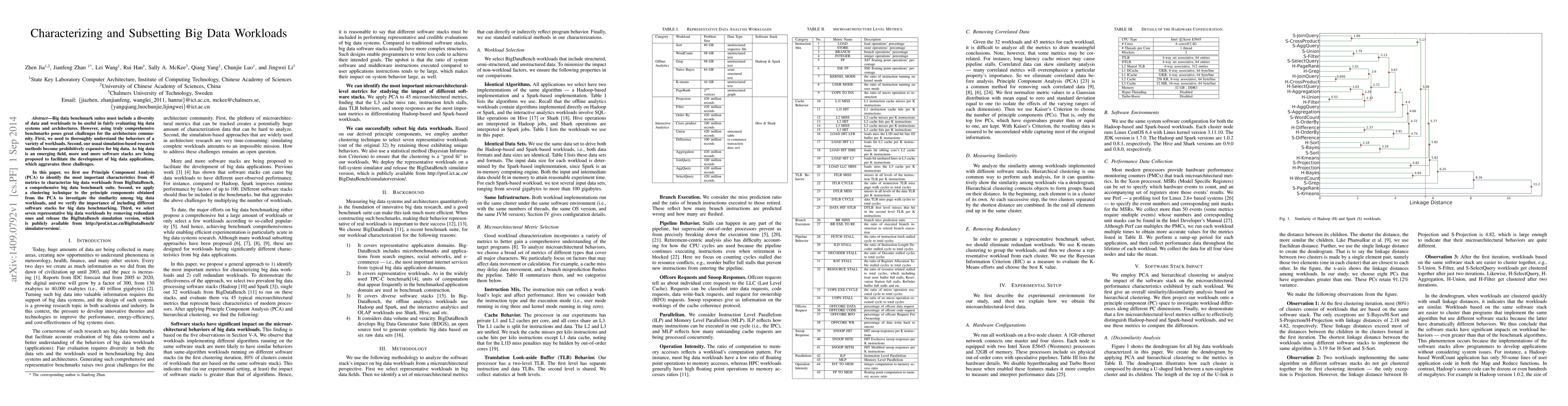 The paper presents a methodology for characterizing and subsetting big data workloads using PCA and clustering, which facilitates efficient simulation-based research in big data systems.