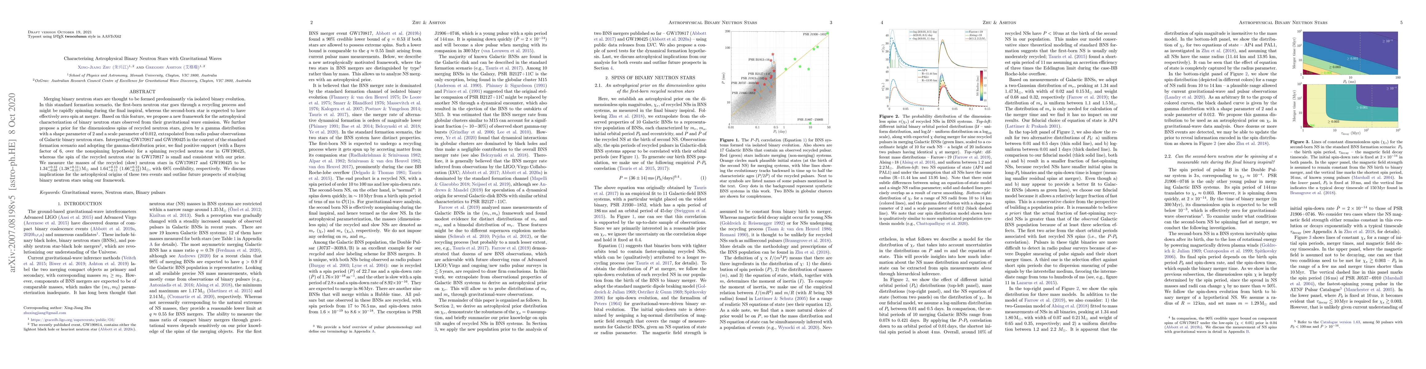 This paper proposes a new framework to characterize binary neutron stars based on their gravitational wave emission, focusing on the spins of recycled neutron stars. It supports the presence of a spinning neutron star in GW190425 and finds a small spin in GW170817, measuring the masses of the recycled neutron stars in both events.