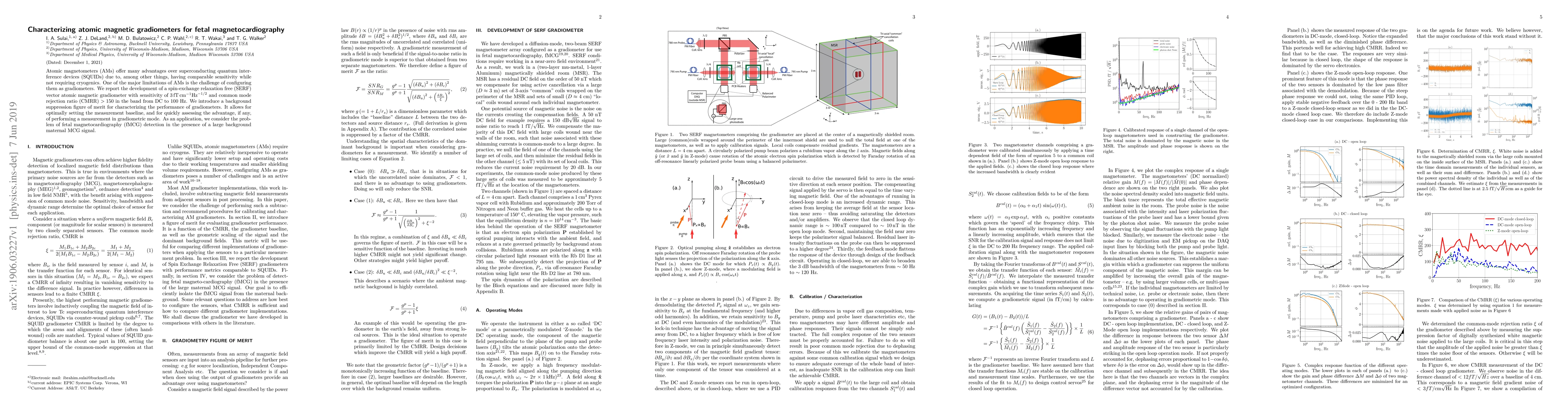 Atomic magnetometers (AMs) offer many advantages over superconducting quantum interference devices (SQUIDs) due to, among other things, having comparable sensitivity while not requiring cryogenics. One of the major limitations of AMs is the challenge of configuring them as gradiometers. We report the development of a spin-exchange relaxation free (SERF) vector atomic magnetic gradiometer with sensitivity of $3\, \rm{fT} \,{cm}^{-1}{Hz}^{-1/2}$ and common mode rejection ratio (CMRR) $> 150$ in the band from DC to 100 Hz. We introduce a background suppression figure of merit for characterizing the performance of gradiometers. It allows for optimally setting the measurement baseline, and for quickly assessing the advantage, if any, of performing a measurement in gradiometric mode. As an application, we consider the problem of fetal magnetocardiography (fMCG) detection in the presence of a large background maternal MCG signal.