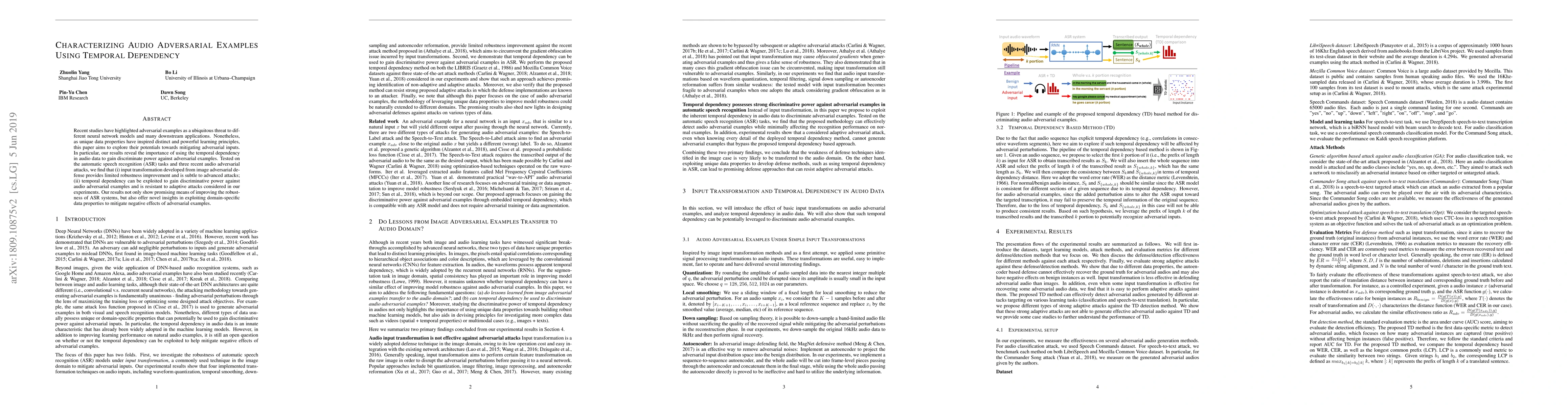 This paper investigates the use of temporal dependency in audio data to enhance robustness against adversarial examples, finding that traditional image-based defenses offer limited benefits. It demonstrates that leveraging temporal features can effectively mitigate adversarial attacks in automatic speech recognition systems, offering insights into domain-specific defenses against adversarial inputs.