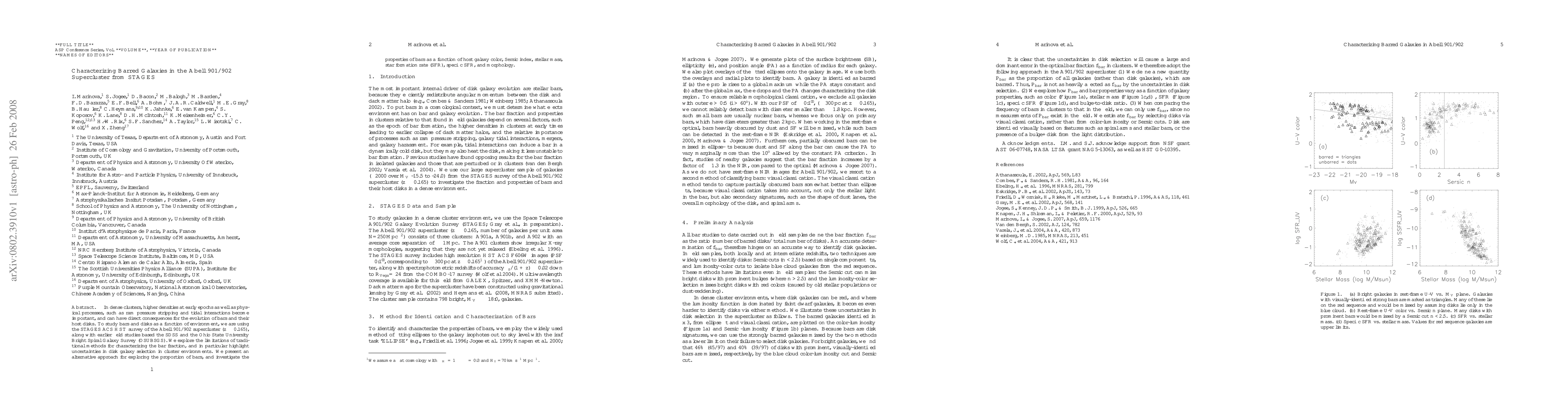 This paper examines barred galaxies within the Abell 901/902 supercluster, focusing on the impact of dense cluster environments on bar evolution. It proposes a new method to assess bar fractions, addressing uncertainties in galaxy selection, and analyzes bar properties in relation to host galaxy characteristics like color, mass, and star formation rates.