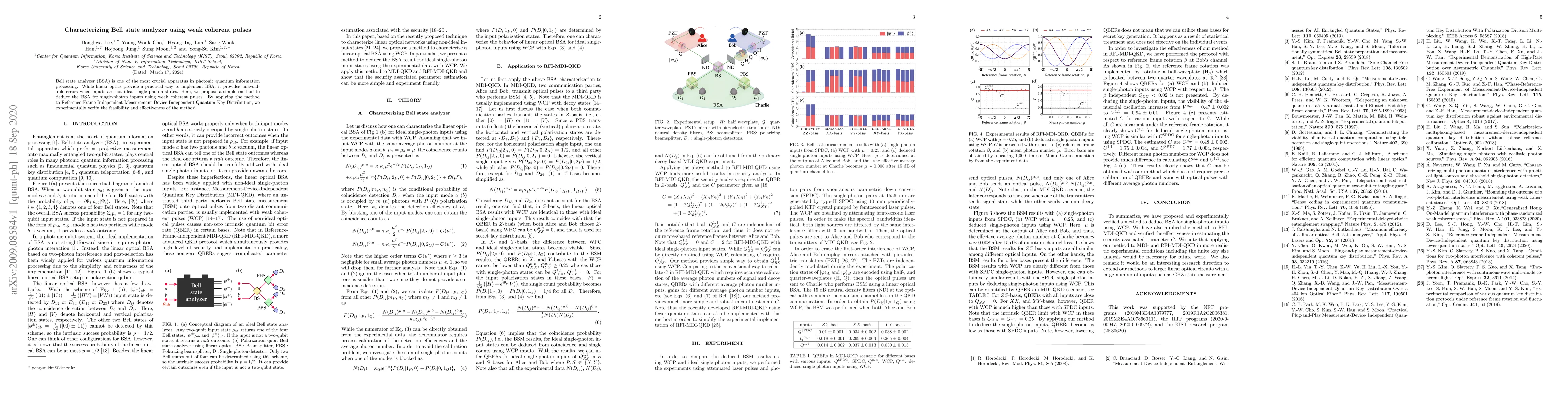 Bell state analyzer (BSA) is one of the most crucial apparatus in photonic quantum information processing. While linear optics provide a practical way to implement BSA, it provides unavoidable errors when inputs are not ideal single-photon states. Here, we propose a simple method to deduce the BSA for single-photon inputs using weak coherent pulses. By applying the method to Reference-Frame-Independent Measurement-Device-Independent Quantum Key Distribution, we experimentally verify the feasibility and effectiveness of the method.