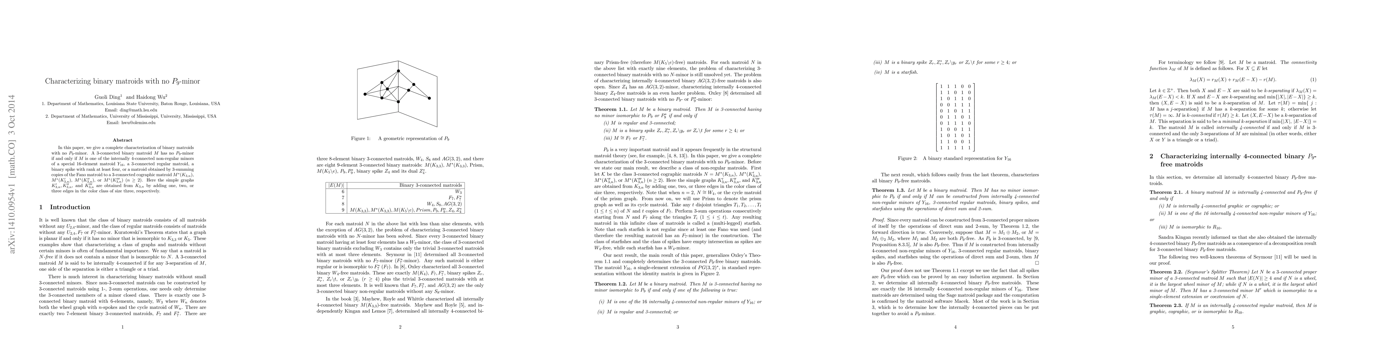 Binary matroids with no P9-minor are characterized as specific types of matroids, including internally 4-connected minors, regular matroids, binary spikes, and certain cographic constructions.