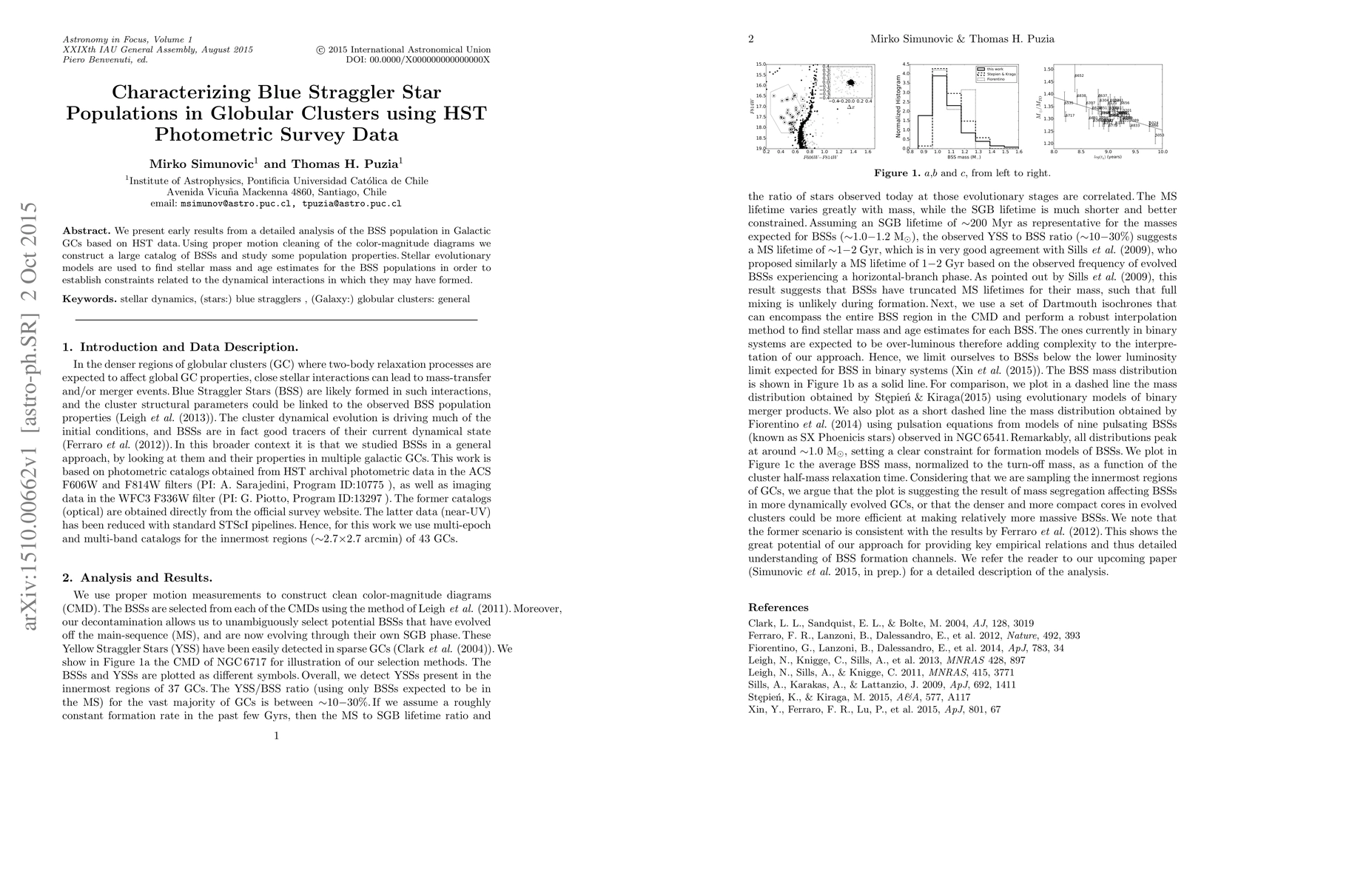 This research characterizes blue straggler star (BSS) populations in Galactic globular clusters using HST photometric survey data. The study constructs a detailed catalog of BSSs through proper motion cleaning and employs stellar evolutionary models to estimate their masses and ages, aiming to understand the dynamical interactions that formed them.