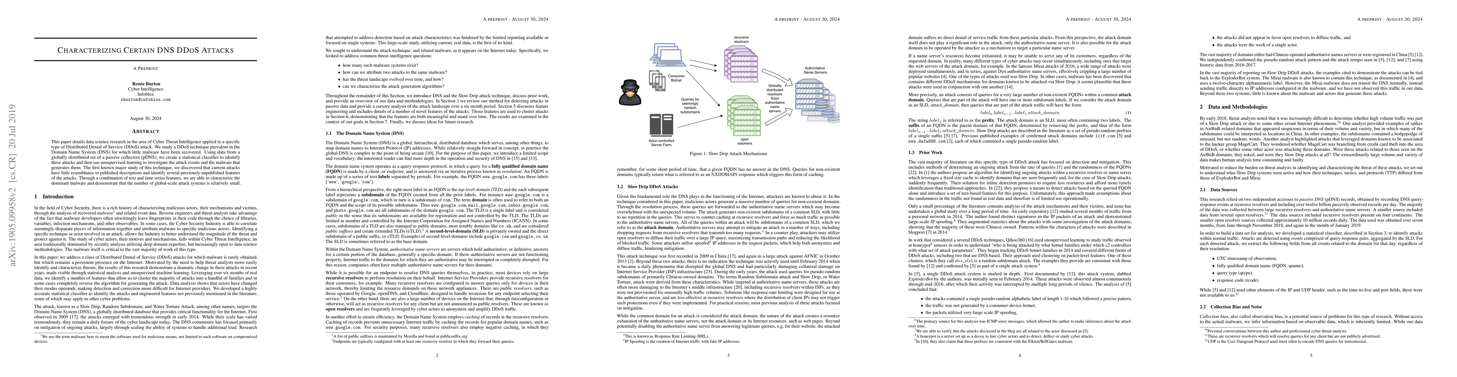 This paper characterizes a unique type of DNS DDoS attack using data science and statistical classification, revealing new features and demonstrating that the number of global-scale attack systems is limited despite little resemblance to previously published descriptions.