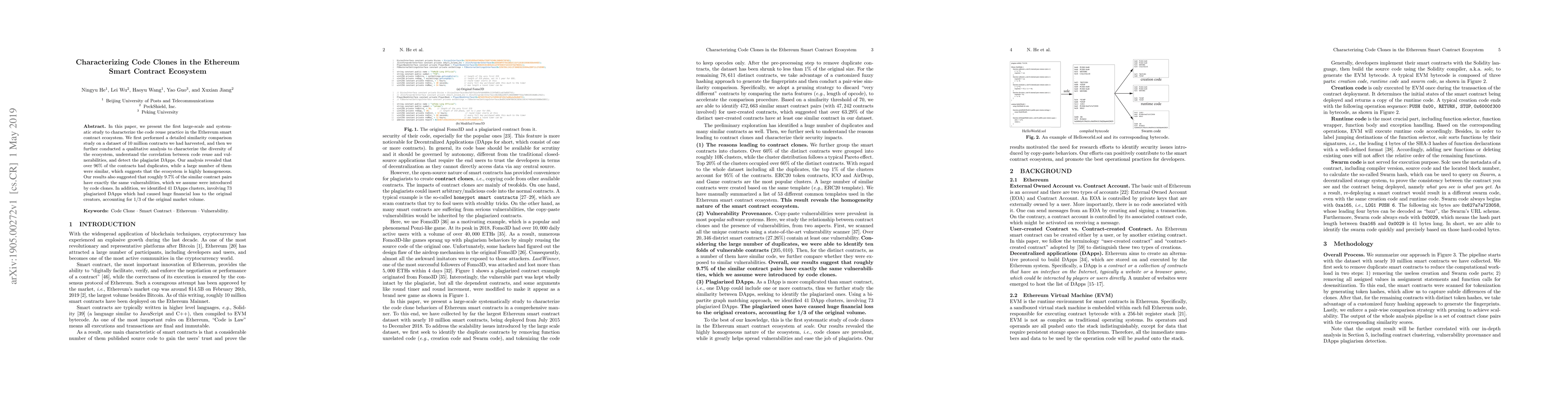 A study of 10 million Ethereum smart contracts found that over 96% had duplicates, with many having the same vulnerabilities, highlighting a high level of code reuse in the ecosystem. The researchers identified 41 DApps clusters involving plagiarized contracts worth 1/3 of the original market volume.
