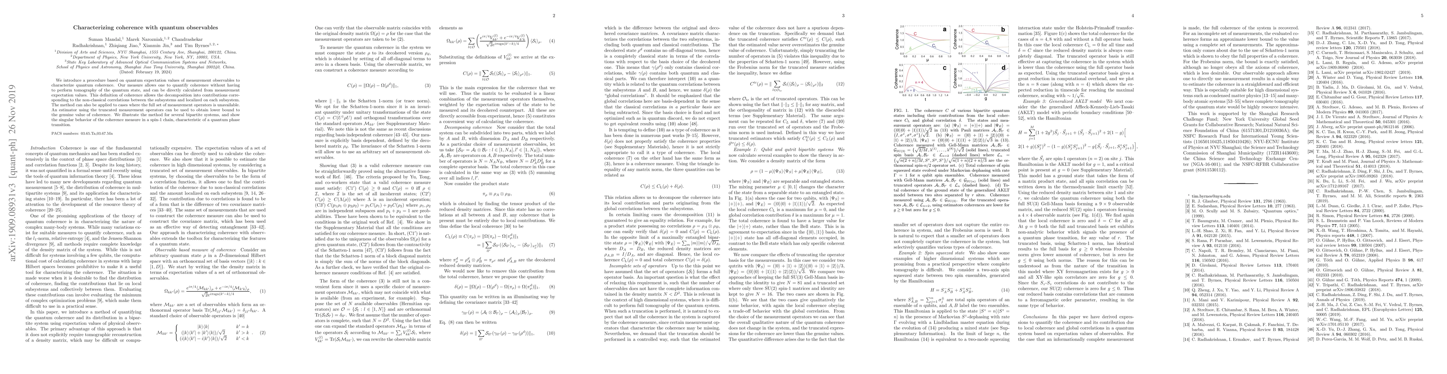 This paper introduces a method to quantify quantum coherence using measurement expectation values, allowing for lower bound estimation even without full measurement operator sets. It demonstrates the approach on several bipartite systems and highlights its application to cases of singular behavior in quantum phase transitions.