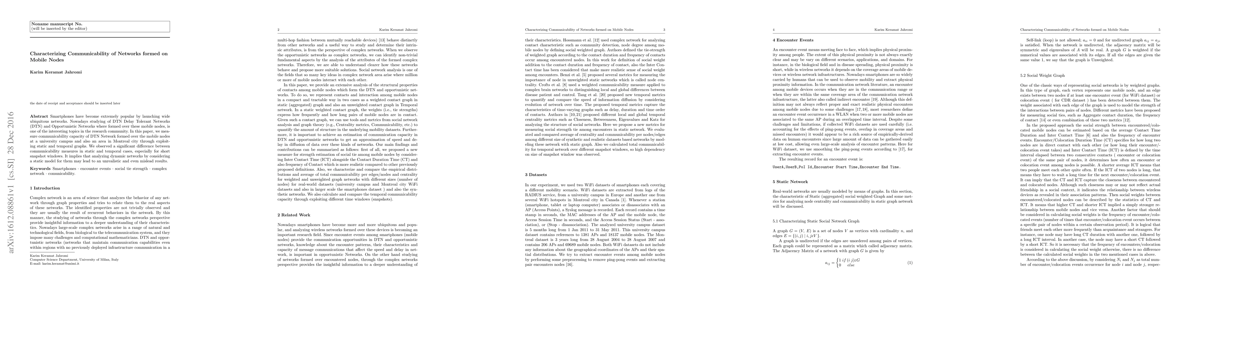 Smartphones have become extremely popular by launching wide ubiquitous networks. Nowadays studying of DTN Delay Tolerant Networks (DTN) and Opportunistic Networks where formed over these mobile nodes, is one of the interesting topics in the research community. In this paper, we measure communicability capacity of DTN Network formed over the mobile nodes at a university campus and also an area in Montreal city through exploiting static and temporal graphs. We observed a significant difference between communicability measures in static and temporal cases, especially for short snapshot windows. It implies that analyzing dynamic networks by considering a static model for them may lead to an unrealistic and even mislead results.