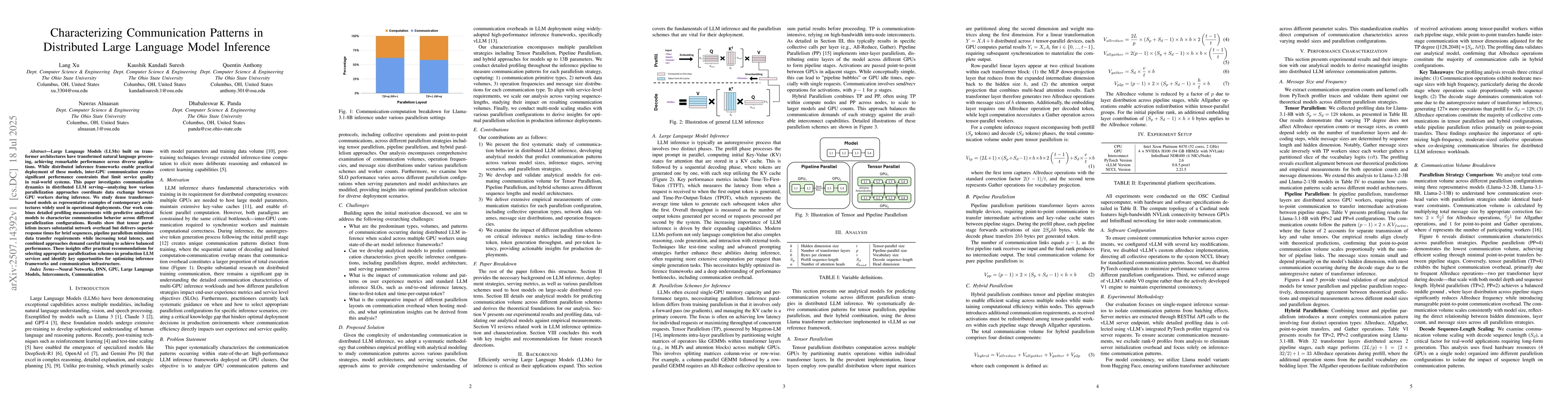 This research examines how large language models are distributed across multiple GPUs for inference, focusing on communication patterns and their impact on performance. It finds that tensor parallelism offers fast responses for short texts but high network overhead, while pipeline parallelism reduces data transfer but increases latency. The study suggests that choosing the right parallelization strategy and optimizing communication infrastructure is crucial for efficient LLM service deployment.