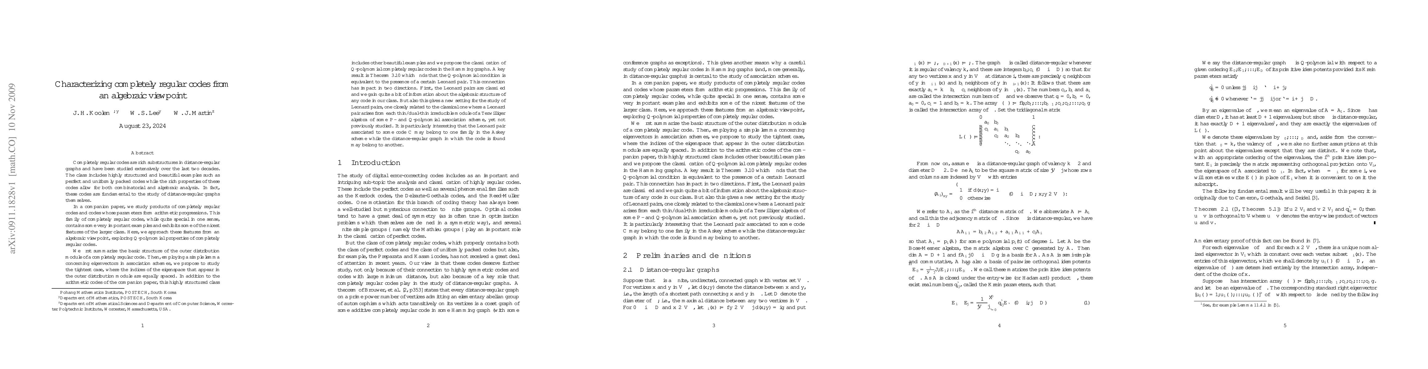 We first summarize the basic structure of the outer distribution module of a completely regular code. Then, employing a simple lemma concerning eigenvectors in association schemes, we propose to study the tightest case, where the indices of the eigenspace that appear in the outer distribution module are equally spaced. In addition to the arithmetic codes of the companion paper, this highly structured class includes other beautiful examples and we propose the classification of $Q$-polynomial completely regular codes in the Hamming graphs. A key result is Theorem 3.10 which finds that the $Q$-polynomial condition is equivalent to the presence of a certain Leonard pair. This connection has impact in two directions. First, the Leonard pairs are classified and we gain quite a bit of information about the algebraic structure of any code in our class. But also this gives a new setting for the study of Leonard pairs, one closely related to the classical one where a Leonard pair arises from each thin/dual-thin irreducible module of a Terwilliger algebra of some $P$- and $Q$-polynomial association scheme, yet not previously studied. It is particularly interesting that the Leonard pair associated to some code $C$ may belong to one family in the Askey scheme while the distance-regular graph in which the code is found may belong to another.