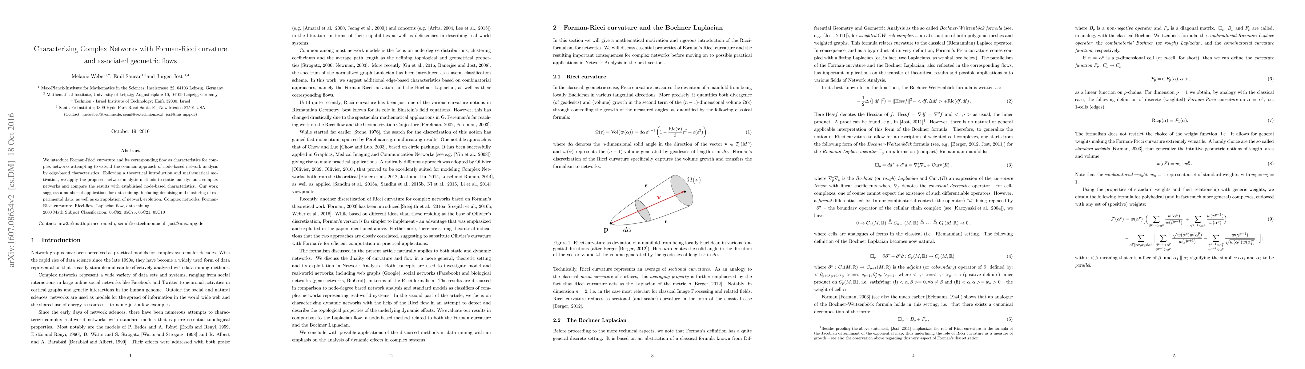 We introduce Forman-Ricci curvature and its corresponding flow as characteristics for complex networks attempting to extend the common approach of node-based network analysis by edge-based characteristics. Following a theoretical introduction and mathematical motivation, we apply the proposed network-analytic methods to static and dynamic complex networks and compare the results with established node-based characteristics. Our work suggests a number of applications for data mining, including denoising and clustering of experimental data, as well as extrapolation of network evolution.