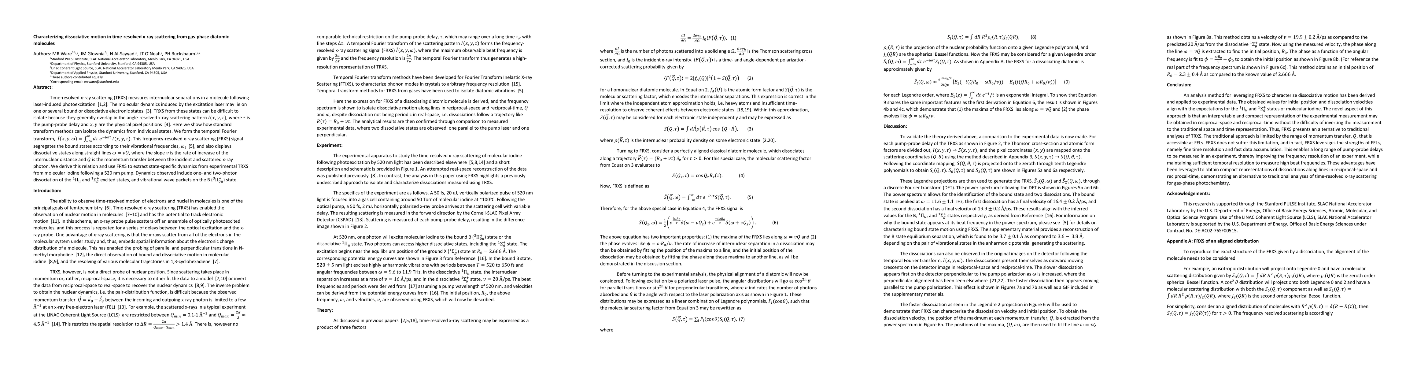 This paper demonstrates how time-resolved x-ray scattering (TRXS) can isolate dissociative and bound molecular dynamics using frequency-resolved x-ray scattering (FRXS). The method transforms TRXS data to reveal state-specific dynamics, including dissociative states characterized by a linear relationship in the FRXS signal.