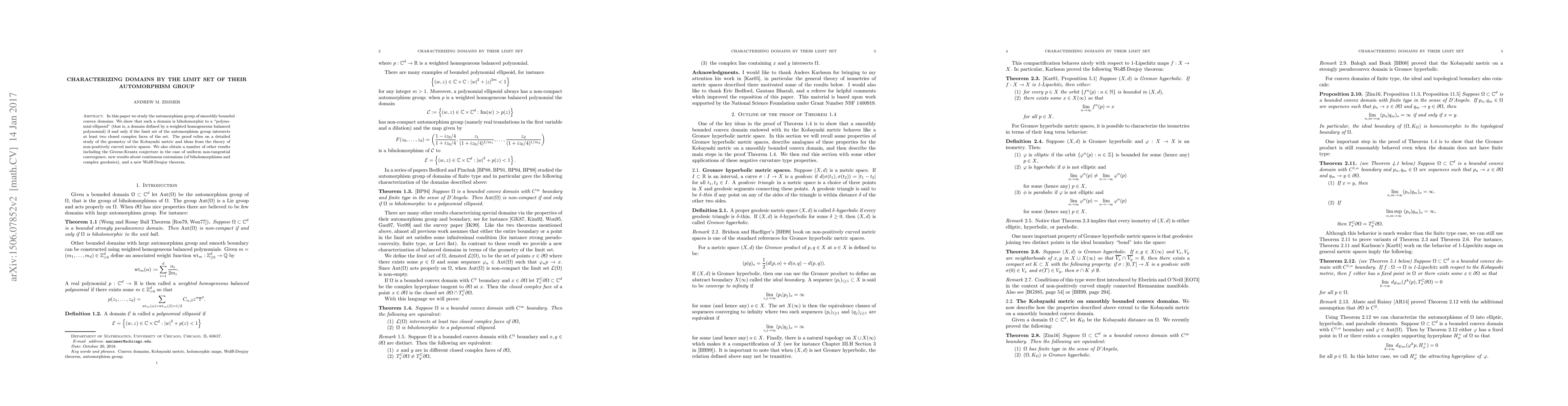 This research paper examines the automorphism group of smoothly bounded convex domains, demonstrating that these domains are biholomorphic to polynomial ellipsoids if their automorphism group's limit set intersects at least two closed complex faces. The proof employs a detailed analysis of the Kobayashi metric and non-positively curved metric space theories. Additional findings include resolution of the Greene-Krantz conjecture, new insights on continuous extensions, and a novel Wolff-Denjoy theorem.