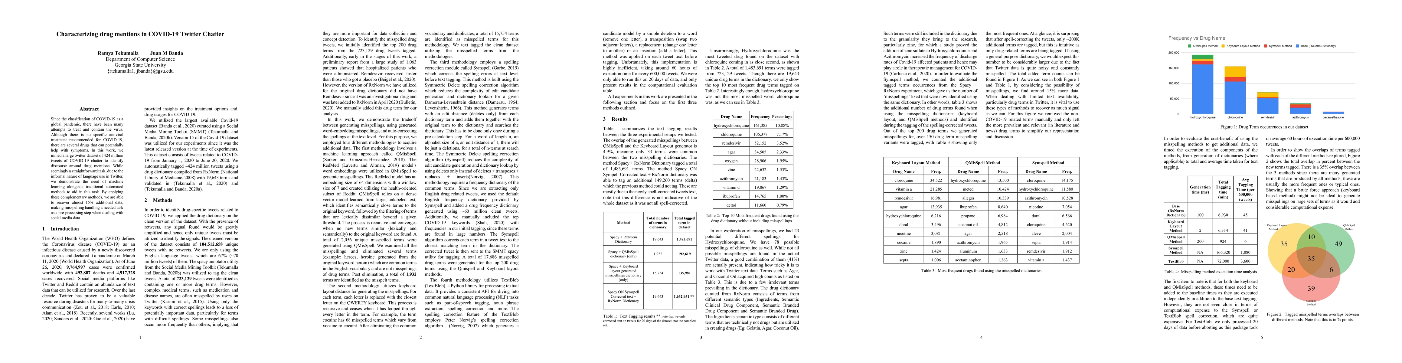 Since the classification of COVID-19 as a global pandemic, there have been many attempts to treat and contain the virus. Although there is no specific antiviral treatment recommended for COVID-19, there are several drugs that can potentially help with symptoms. In this work, we mined a large twitter dataset of 424 million tweets of COVID-19 chatter to identify discourse around drug mentions. While seemingly a straightforward task, due to the informal nature of language use in Twitter, we demonstrate the need of machine learning alongside traditional automated methods to aid in this task. By applying these complementary methods, we are able to recover almost 15% additional data, making misspelling handling a needed task as a pre-processing step when dealing with social media data.