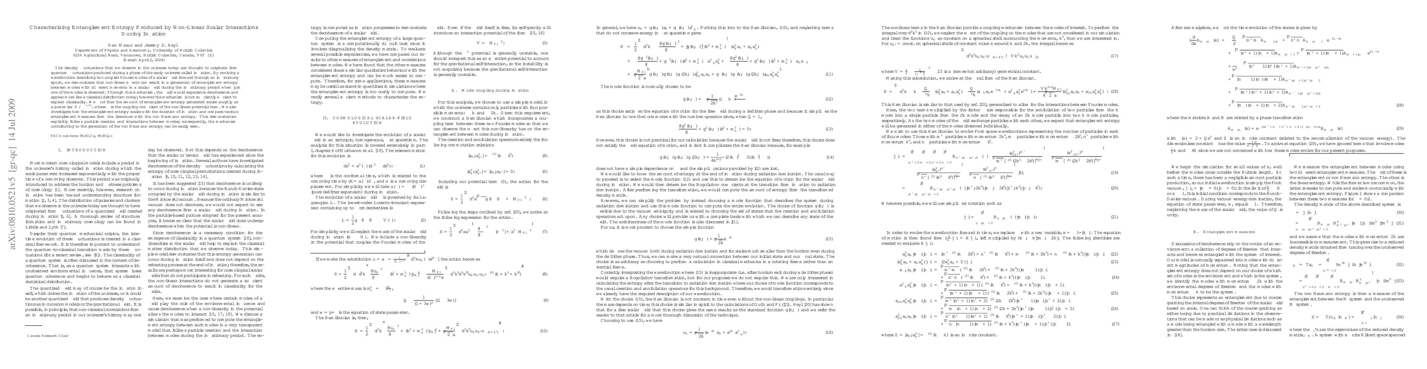 Research demonstrates that non-linear interactions during inflation can generate entanglement entropy between scalar field modes, leading to decoherence and a classical distribution today. The amount of generated entanglement entropy scales with the coupling coefficient and duration of inflation.