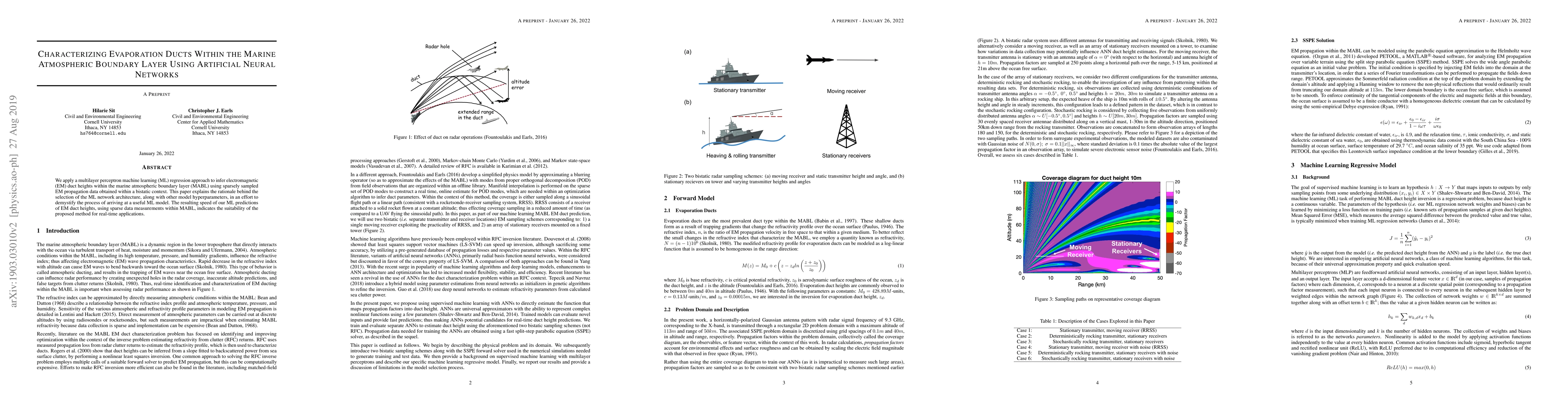 We apply a multilayer perceptron machine learning (ML) regression approach to infer electromagnetic (EM) duct heights within the marine atmospheric boundary layer (MABL) using sparsely sampled EM propagation data obtained within a bistatic context. This paper explains the rationale behind the selection of the ML network architecture, along with other model hyperparameters, in an effort to demystify the process of arriving at a useful ML model. The resulting speed of our ML predictions of EM duct heights, using sparse data measurements within MABL, indicates the suitability of the proposed method for real-time applications.