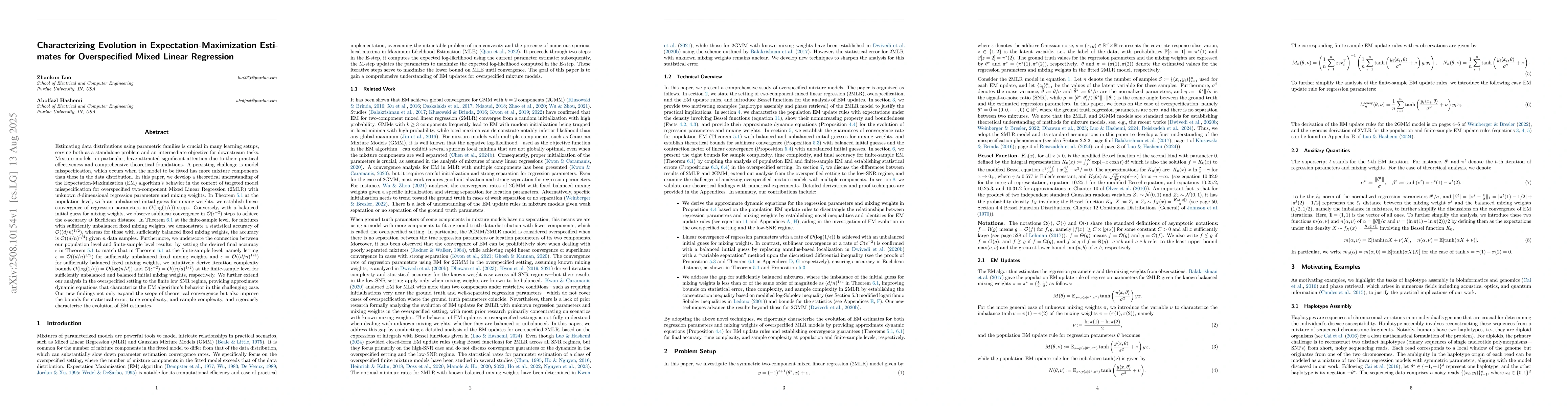 Mixture models have attracted significant attention due to practical effectiveness and comprehensive theoretical foundations. A persisting challenge is model misspecification, which occurs when the model to be fitted has more mixture components than those in the data distribution. In this paper, we develop a theoretical understanding of the Expectation-Maximization (EM) algorithm's behavior in the context of targeted model misspecification for overspecified two-component Mixed Linear Regression (2MLR) with unknown $d$-dimensional regression parameters and mixing weights. In Theorem 5.1 at the population level, with an unbalanced initial guess for mixing weights, we establish linear convergence of regression parameters in $O(\log(1/\epsilon))$ steps. Conversely, with a balanced initial guess for mixing weights, we observe sublinear convergence in $O(\epsilon^{-2})$ steps to achieve the $\epsilon$-accuracy at Euclidean distance. In Theorem 6.1 at the finite-sample level, for mixtures with sufficiently unbalanced fixed mixing weights, we demonstrate a statistical accuracy of $O((d/n)^{1/2})$, whereas for those with sufficiently balanced fixed mixing weights, the accuracy is $O((d/n)^{1/4})$ given $n$ data samples. Furthermore, we underscore the connection between our population level and finite-sample level results: by setting the desired final accuracy $\epsilon$ in Theorem 5.1 to match that in Theorem 6.1 at the finite-sample level, namely letting $\epsilon = O((d/n)^{1/2})$ for sufficiently unbalanced fixed mixing weights and $\epsilon = O((d/n)^{1/4})$ for sufficiently balanced fixed mixing weights, we intuitively derive iteration complexity bounds $O(\log (1/\epsilon))=O(\log (n/d))$ and $O(\epsilon^{-2})=O((n/d)^{1/2})$ at the finite-sample level for sufficiently unbalanced and balanced initial mixing weights. We further extend our analysis in overspecified setting to low SNR regime.
